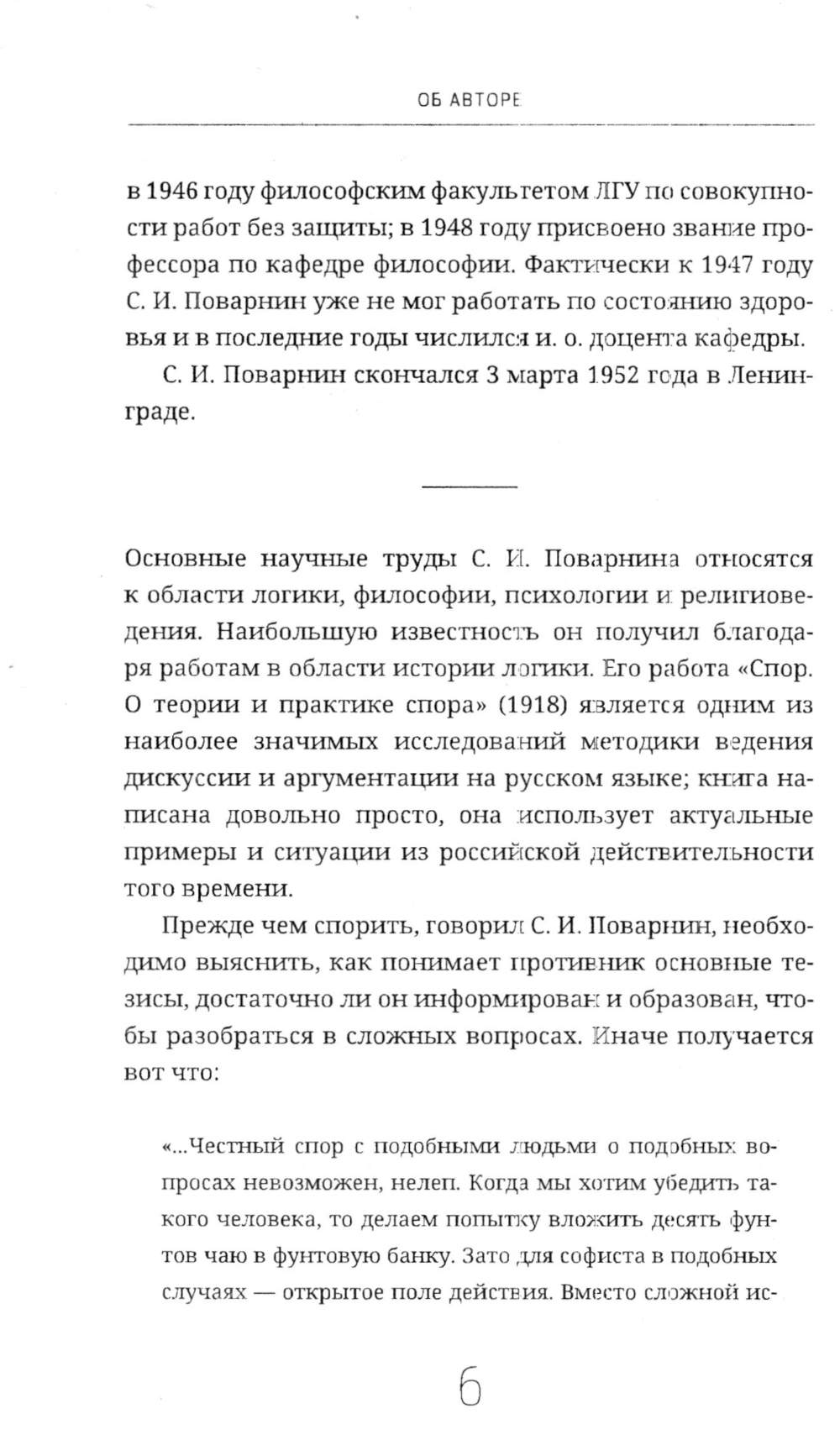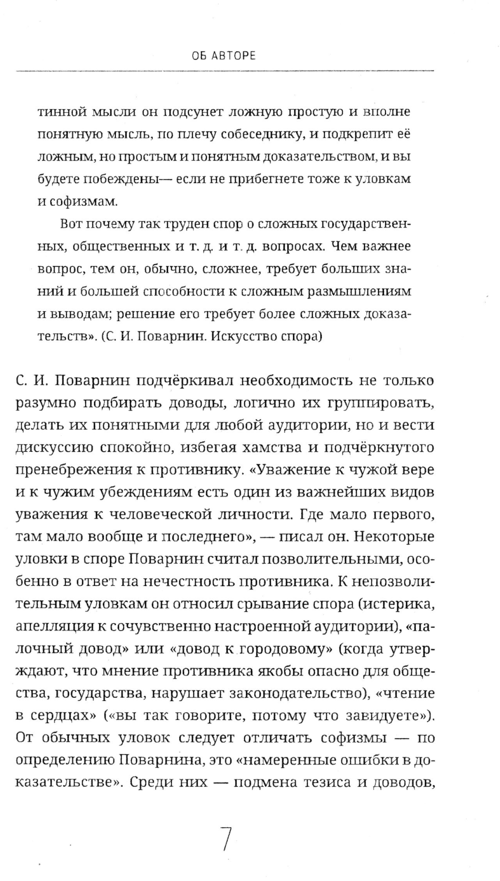 Спор имеет огромное значение в жизни, в науке, в государственных и общественных делах. Где нет споров о важных, серьёзных вопросах, там застой. Наше время характеризуется горячими спорами общественного и политического характера, особенно в Интернете и социальных сетях. Книга русского философа и логика Сергея Иннокентьевича Поварнина (1870-1952), впервые изданная в 1918 году, до сих пор сохранила актуальность и может послужить прекрасным учебным пособием для тех, кто хочет научиться грамотно спорить. Для широкого круга читателей.| Издательство | Книга |