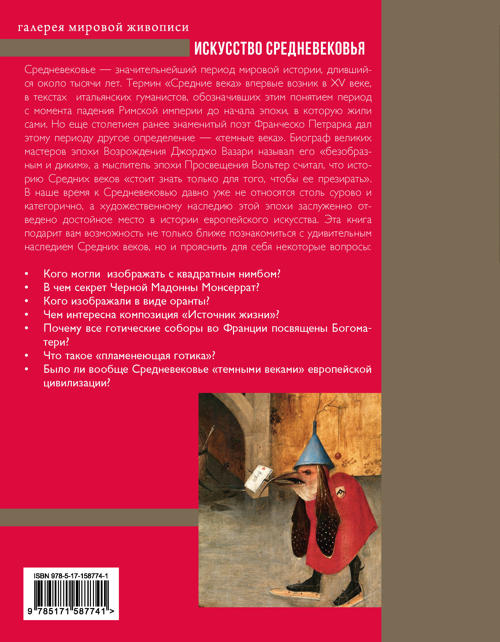 Средневековье - значительнейший период мировой истории, длившийся около тысячи лет. Термин "средние века" впервые возник в XV веке, в текстах итальянских гуманистов, обозначивших этим понятием период с момента падения Римской империи до начала эпохи, в которую жили сами. Но еще столетием ранее знаменитый поэт Франческо Петрарка дал этому периоду другое определение - "темные века". Биограф великих мастеров эпохи Возрождения, Джорджо Вазари, называл его "безобразным и диким", а мыслитель эпохи Просвещения Вольтер считал, что историю Средних веков "стоит знать только для того, чтобы ее презирать". В наше время к Средневековью давно уже не относятся столь сурово и категорично, а художественному наследию этой эпохи заслуженно отведено достойное место в истории европейского искусства. Эта книга подарит вам возможность не только ближе познакомиться с удивительным наследием Средних веков, но и прояснить для себя некоторые вопросы: Кого могли изображать с квадратным нимбом? В чем секрет Черной Мадонны Монсеррат? Кого изображали в виде оранты? Чем интересна композиция "источник жизни"? Почему все готические соборы во Франции посвящены Богоматери? Что такое "пламенеющая готика"? Было ли вообще Средневековье "темными веками" европейской цивилизации?| Издательство | Издательство "АСТ" |