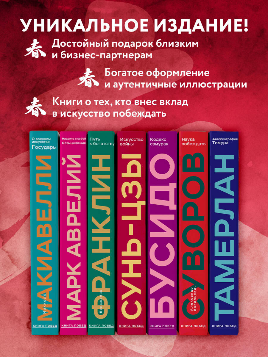 «Искусство войны» легендарного военного стратега и мыслителя Древнего Китая Сунь-цзы не случайно входит в плеяду величайших трудов по военному делу, которую представляет собой эта коллекционная серия. «Трактат учителя Суня» задуман как универсальное руководство по стратегии, тактике и искусству управления, сочетающее практические советы опытного управленца и размышления мудреца о природе борьбы. Именно поэтому книга не теряет актуальности по сей день и пользуется успехом у современных руководителей, желающих вести за собой людей. О серии «Книга побед» - коллекционная серия подарочных иллюстрированных книг, объединившая фигуры легендарных исторических личностей, которые внесли каждый свой вклад в искусство побеждать. Издания, вошедшие в серию, посвящены не только премудростям военной науки, тактике, стратегии, но и воспитанию духа, воли и качеств настоящего лидера, необходимых для победы. Собеседниками и учителями выступают легендарные полководцы, мыслители, государственные деятели. Каждая книга серии выполнена в уникальном дизайне с удлиненным форзацем, имитирующим печать на обрезе, и сопровождена большим количеством цветных и черно-белых иллюстраций, которые позволяют полнее проникнуться духом славной эпохи и лучше усвоить уроки великих. Серия в качественном полиграфическом исполнении станет настоящим украшением домашней и деловой библиотеки истинных книголюбов и собирателей редких книг, достойным подарком близким и бизнес-партнерам, а также ценным источником для всех, кто интересуется военной историей и ее ключевыми фигурами, историей государственного управления, ролью личности в истории.| Издательство | ООО "Издательство "Эксмо" |