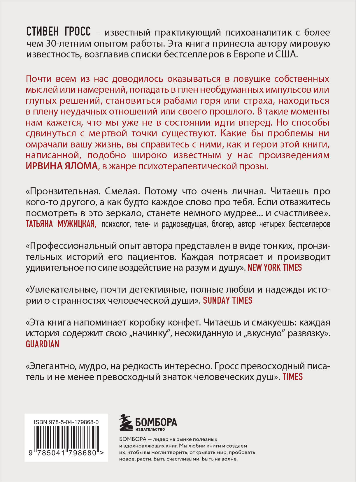 «Пронзительная. Смелая. Потому что очень личная. Читаешь про кого-то другого, а как будто каждое слово про тебя. Если отважитесь посмотреть в это зеркало, станете немного мудрее... и счастливее». - Татьяна Мужицкая, психолог, теле- и радиоведущая, блогер, автор четырех бестселлеров Стивен Гросс - известный психоаналитик с более чем 30-летним опытом терапевтической практики. Его книга «Искусство жить», которая сочетает в себе тонкий психологизм Чехова и стиль клинических историй Сакса, принесла автору мировую славу, возглавив списки бестселлеров в Европе и США. Каждый рассказ - честная и увлекательная история взаимодействия пациента и психоаналитика, сюжет которой развивается подобно захватывающему детективу. Подробно описывая процесс своей работы, автор каждый раз поражает развязкой - тем самым переломным моментом в практике психоанализа, когда человек извлекает из глубины подсознания истинную причину своих переживаний. Эта книга, одна из лучших в жанре психотерапевтической прозы наравне с рассказами Ирвина Ялома, позволит сделать важный шаг на пути освоения великого искусства жить свободно, достойно и счастливо.