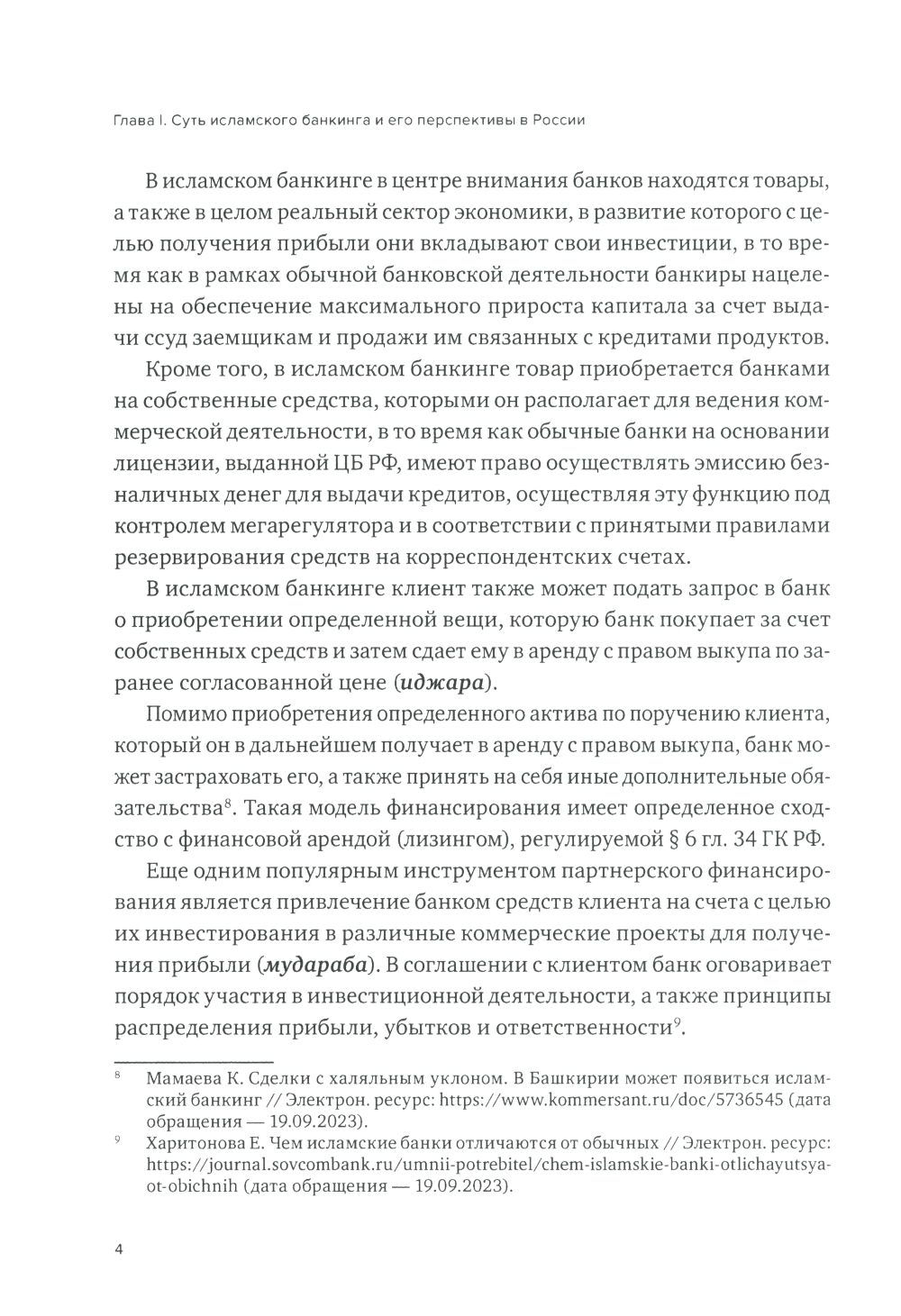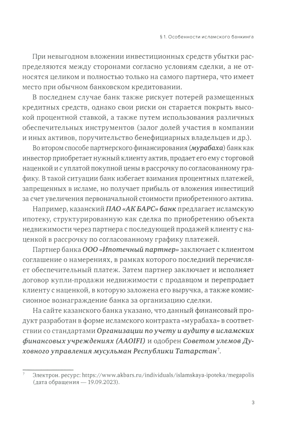 Исламский банкинг представляет собой финансовую деятельность, основанную на принципах шариата и принципиально отличающуюся от стандартного банковского бизнеса отказом банков от взимания процентных и иных платежей за ссужаемые денежные средства. В исламском банкинге банки занимаются не кредитованием, а проектным финансированием, участвуя в инвестировании средств в развитие различных коммерческих проектов в реальном секторе экономики и избегая спекулятивных схем. Одними из самых распространенных способов привлечения капитала в исламском банкинге являются мушарака, мурабаха, иджара и мудараба, которые в российском праве имеют определенное сходство с договором простого товарищества (о совместной деятельности), с отсрочкой и рассрочкой оплаты, с лизингом (аренда с правом выкупа) и инвестиционной деятельностью. Приверженность религиозным правилам и канонам ислама исключает для банков возможность инвестирования в производство и реализацию алкогольной продукции, производство свинины, игорный бизнес, оружейное дело и другие сферы, находящиеся под запретом (харам). В настоящей книге с опорой на законодательство РФ и судебную практику мы решили изучить особенности исламского банкинга и правовой механизм партнерского финансирования, введенный недавно принятым федеральным законом, исследовать основные инструменты исламского банкинга (покупки в рассрочку, беспроцентный заем, финансовая аренда (лизинг), договор простого товарищества (о совместной деятельности) и доверительное управление активами, а также для сравнения обратиться к анализу таких кредитных инструментов на рынке долгового финансирования, как грейс-период по кредиту и ростовщический процент.| Издательство | Инфотропик Медиа |