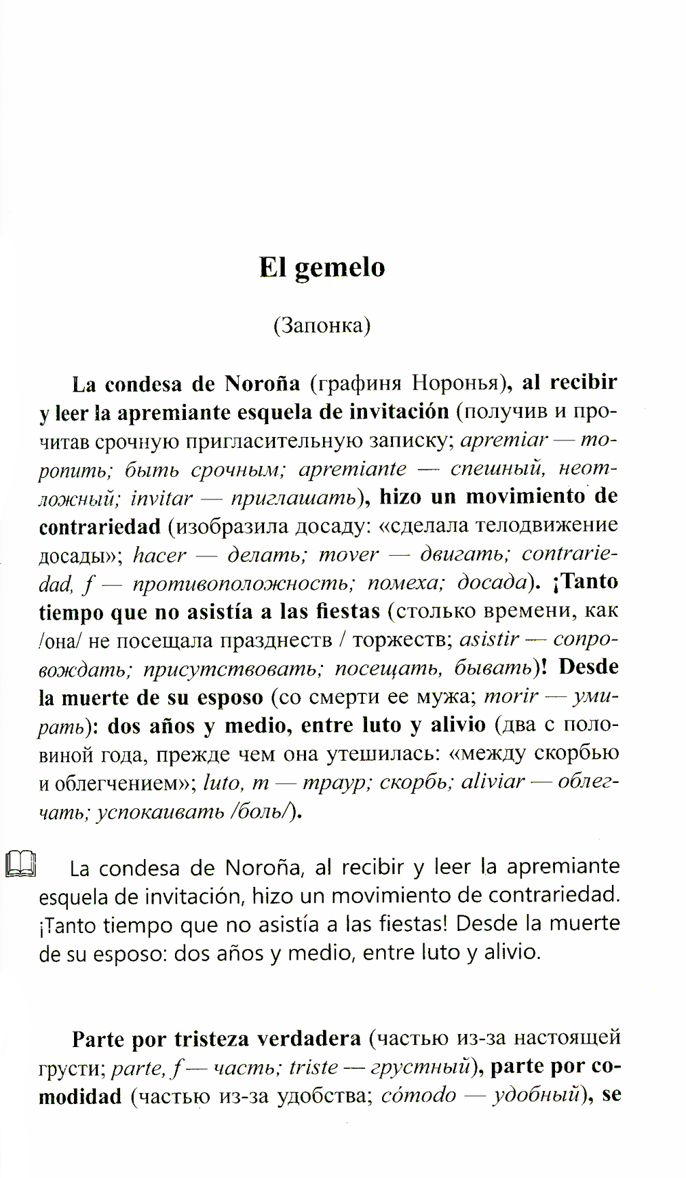 Новеллы адаптированы по методу Ильи Франка: снабжены дословным переводом на русский язык и необходимым лексико-грамматическим комментарием (без упрощения текста оригинала). Уникальность метода заключается в том, что запоминание слов и выражений происходит за счет их повторяемости, без заучивания и необходимости использовать словарь. Кроме того, читатель привыкает к логике испанского языка, начинает его "чувствовать".