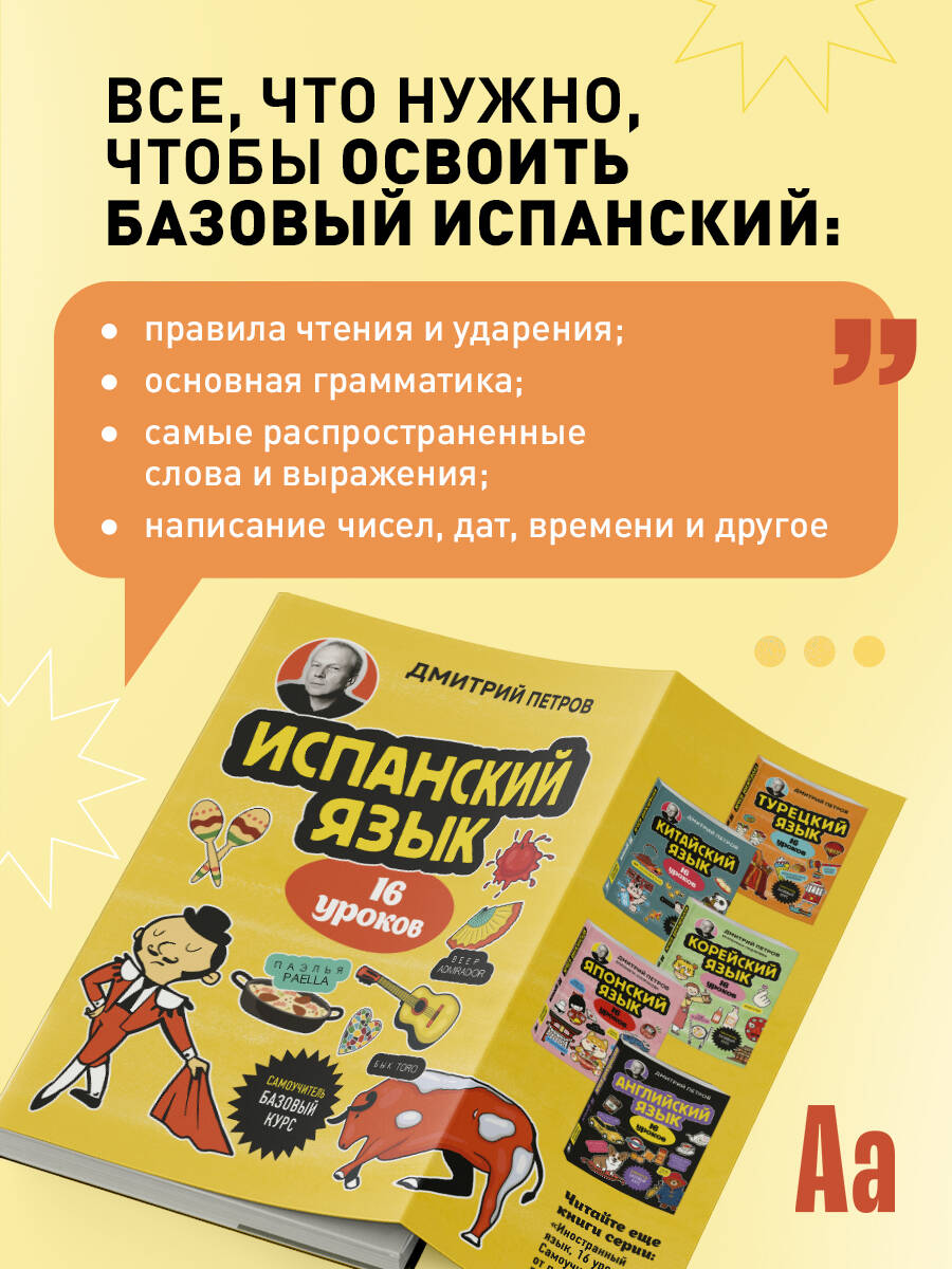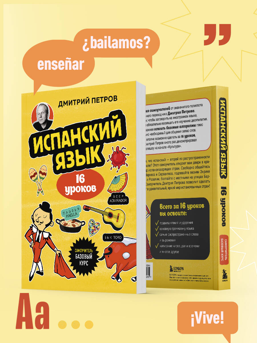 А вы знали, что испанский - второй по распространенности родной язык на земле? Этот самоучитель откроет вам двери к красочному миру испаноговорящих стран. Свободно общайтесь на языке Маркеса и Сервантеса, подпевайте песням Энрике Иглесиаса и Розалии, болтайте с местными на улицах Барселоны... Самоучитель Дмитрия Петрова позволит сделать первый шаг в удивительный яркий мир испаноязычных стран! Всего за 16 уроков вы освоите: - правила чтения и ударения; - основную грамматику языка; - самые распространенные слова и выражения; - написание чисел, дат и времени; - и многое другое.| Издательство | ООО "Издательство "Эксмо" |