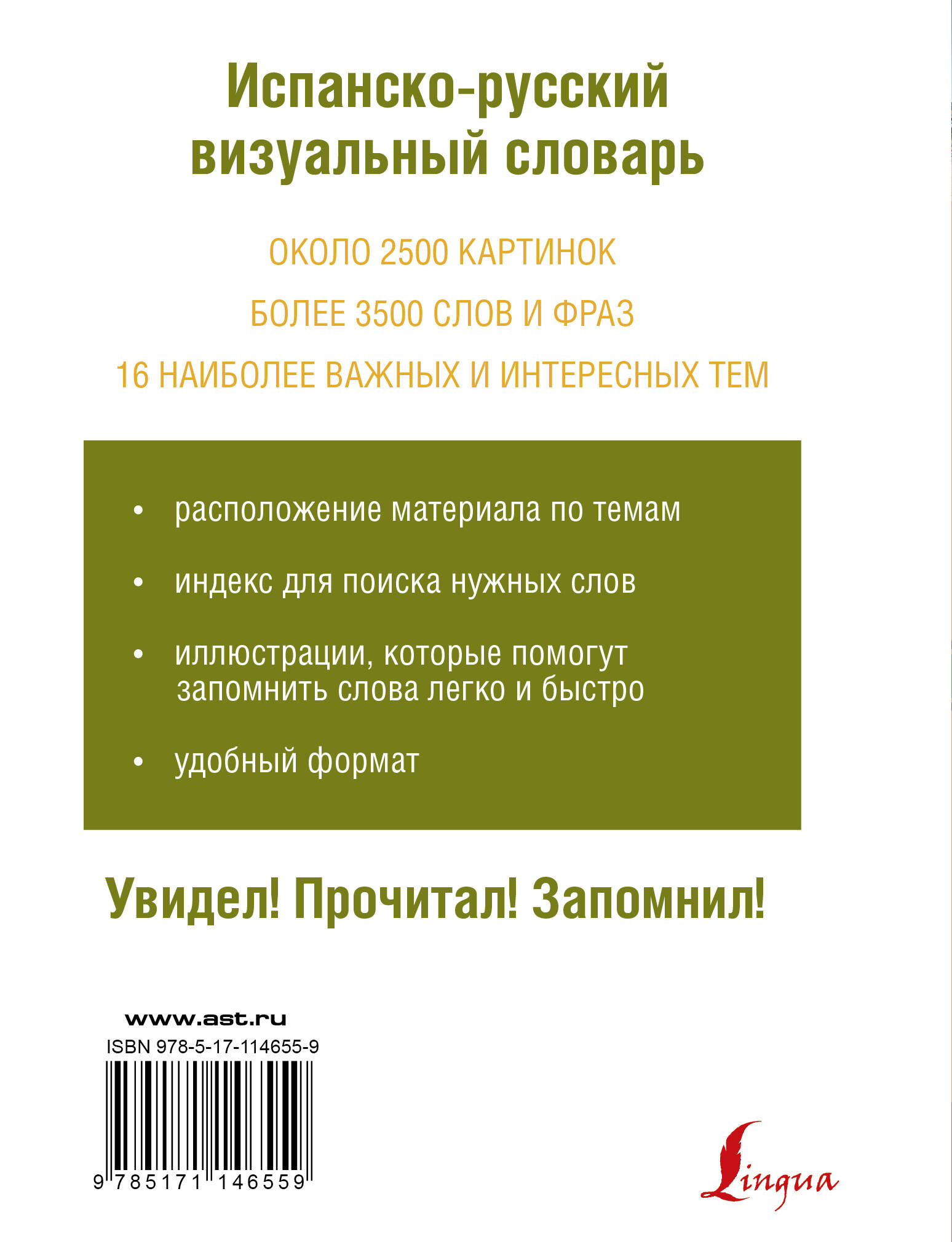Испанско-русский визуальный словарь содержит около 2500 иллюстраций и более 3500 слов и употребительных фраз. Достаточно подробно освещены 16 тем, среди которых Обучение, Дом, Общественное питание, Покупки, Спорт, Досуг и др. Словарь, в котором применен принцип наглядности, поможет в изучении испанского языка, ускорит освоение новой лексики, а кроме того, послужит расширению общего кругозора. Корпус словаря снабжен испанским и русским указателями, позволяющими быстро найти нужное слово. Издание предназначено для всех, кто учит испанский язык или работает с ним.