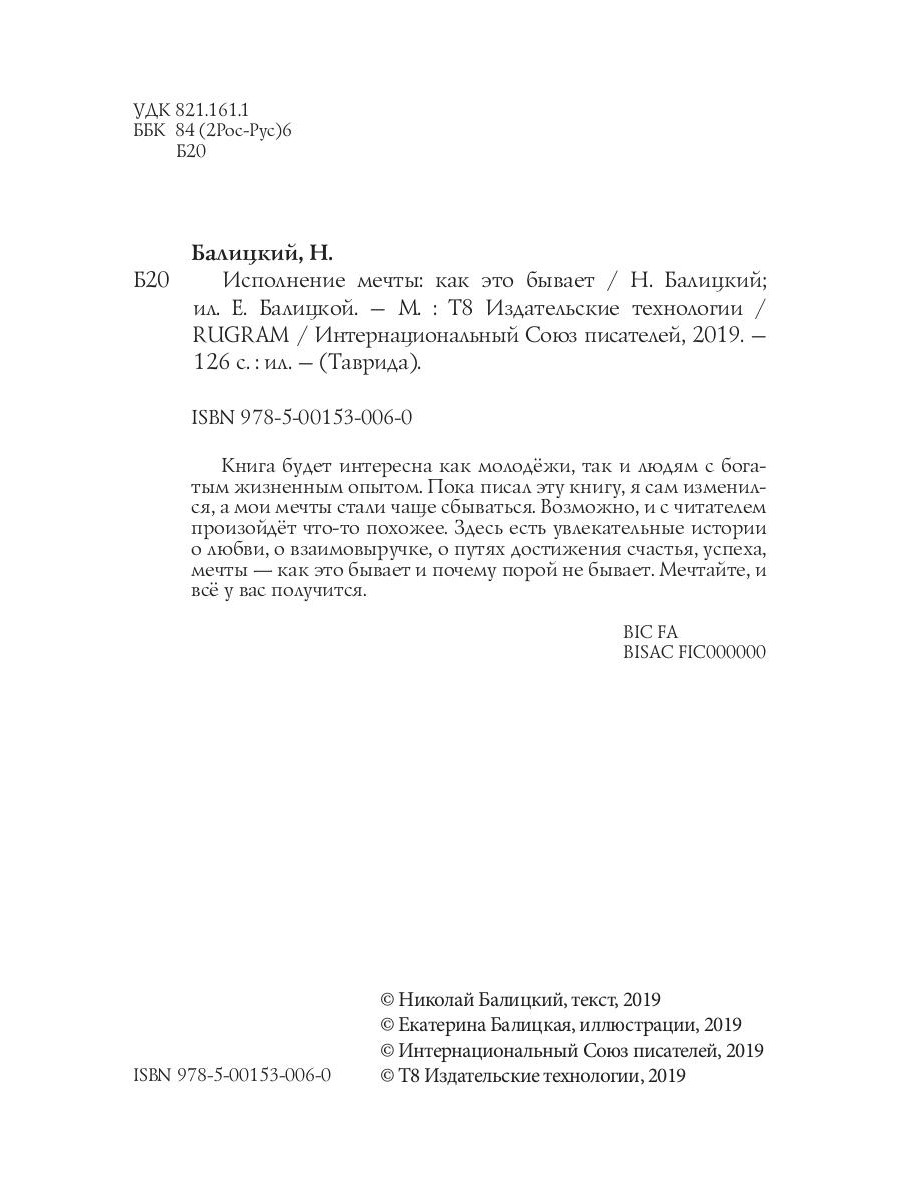 Книга будет интересна как молодёжи, так и людям с богатым жизненным опытом. Пока писал эту книгу, я сам изменился, а мои мечты стали чаще сбываться. Возможно, и с читателем произойдёт что-то похожее. Здесь есть увлекательные истории о любви, о взаимовыручке, о путях достижения счастья, успеха, мечты - как это бывает и почему порой не бывает. Мечтайте, и всё у вас получится.
