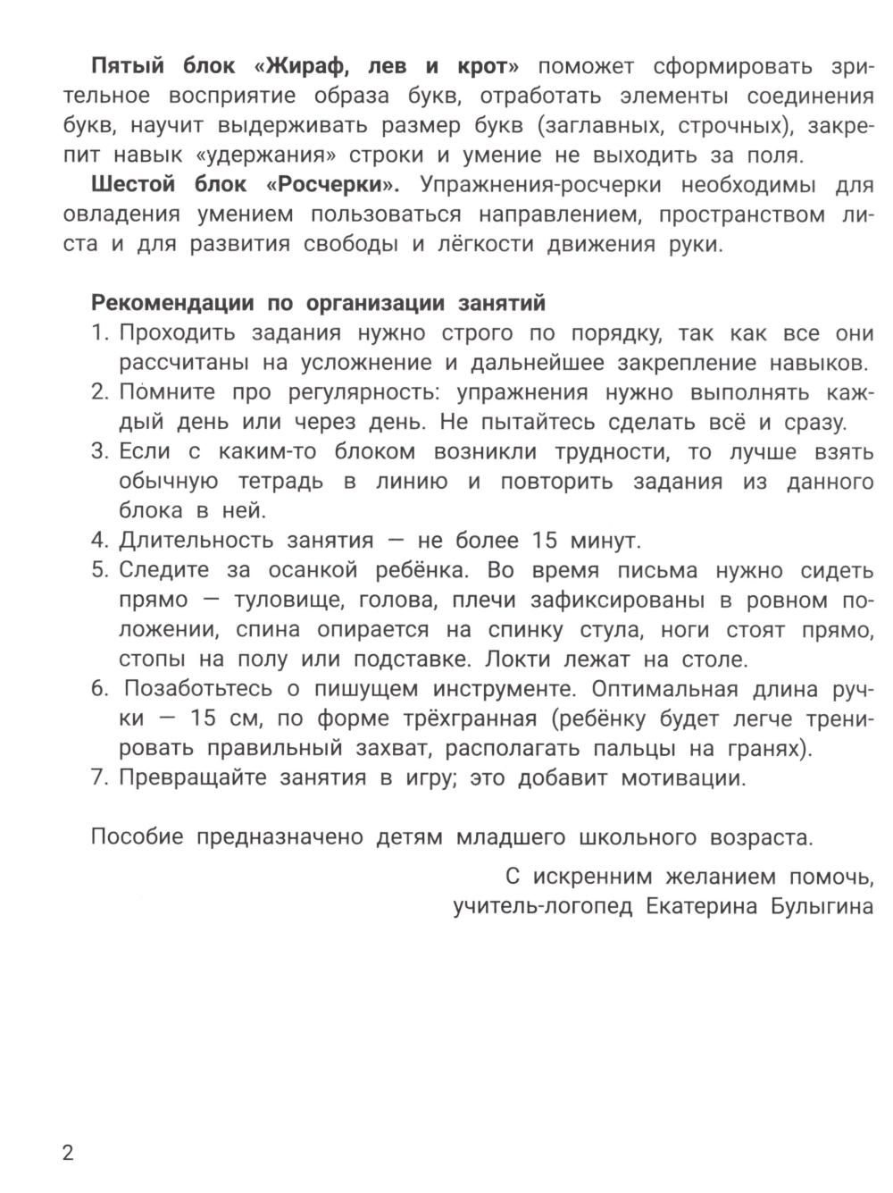 В пособии представлена простая и доступная система занятий по коррекции почерка. Курс занятий состоит из 6 блоков, каждый из которых направлен на развитие определённого навыка. Выполняя нестандартные упражнения, ребёнок сможет отработать базовые параметры письма: наклон, высоту, ширину, соблюдение размеров рабочей строки. Различные виды линовки помогут школьнику довести навык написания букв до автоматизма и сформировать мышечную память руки. Пособие предназначено детям младшего школьного возраста для занятий в паре «взрослый - ребёнок».