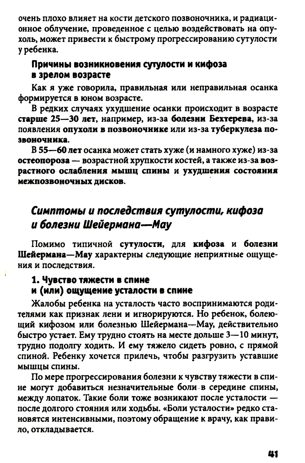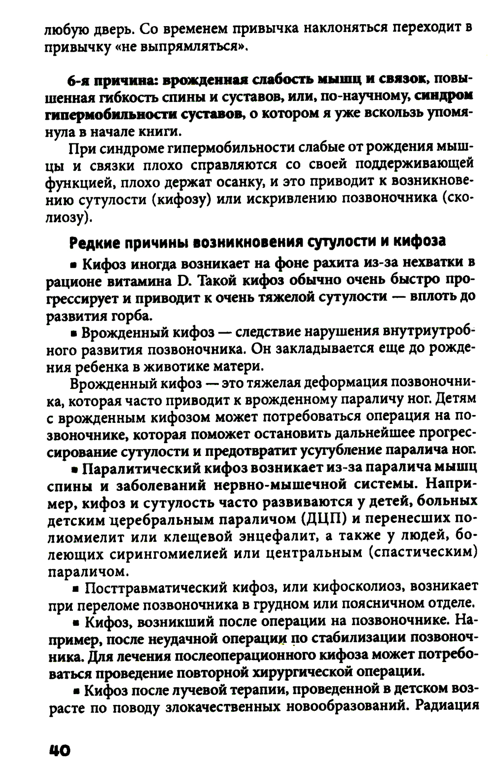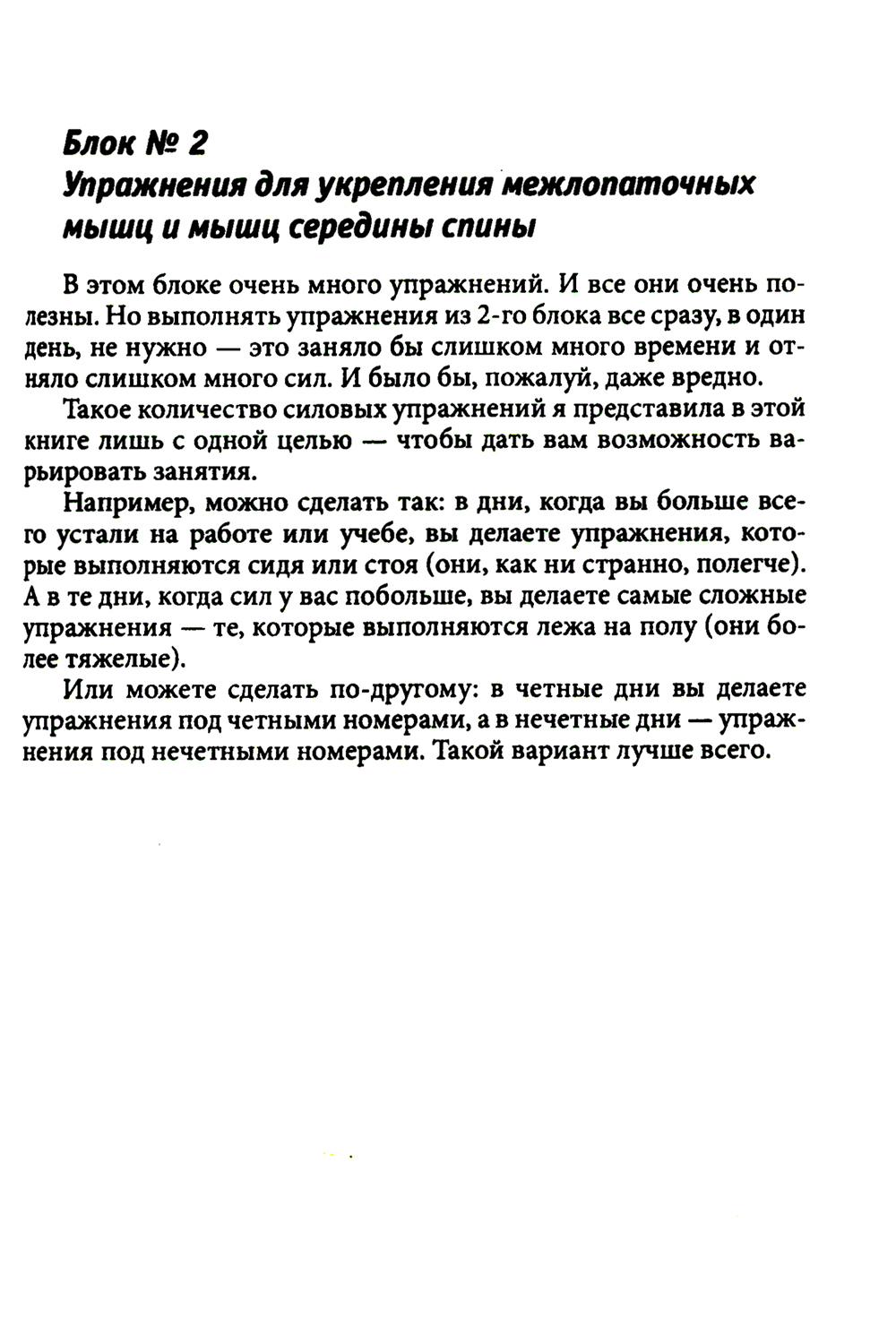 Предложенный в книге комплекс упражнений может быть полезен любому человеку до 45 лет, желающему сделать свою спину более стройной и здоровой, чем раньше. Но особенно полезной книга будет для тех, кто имеет врожденные или приобретенные нарушения осанки: сутулость, вялая осанка, кифоз (гиперкифоз), болезнь Шейермана-May, плоская спина, искривление позвоночника (сколиоз, кифосколиоз), а также для болеющих начальными стадиями болезни Бехтерева и синдромом гипермобильности суставов и позвоночника. С помощью этой гимнастики можно простыми и понятными способами за определенное время исправить свою осанку. Все, что вам нужно - только внимательность и усердие в выполнении упражнений.