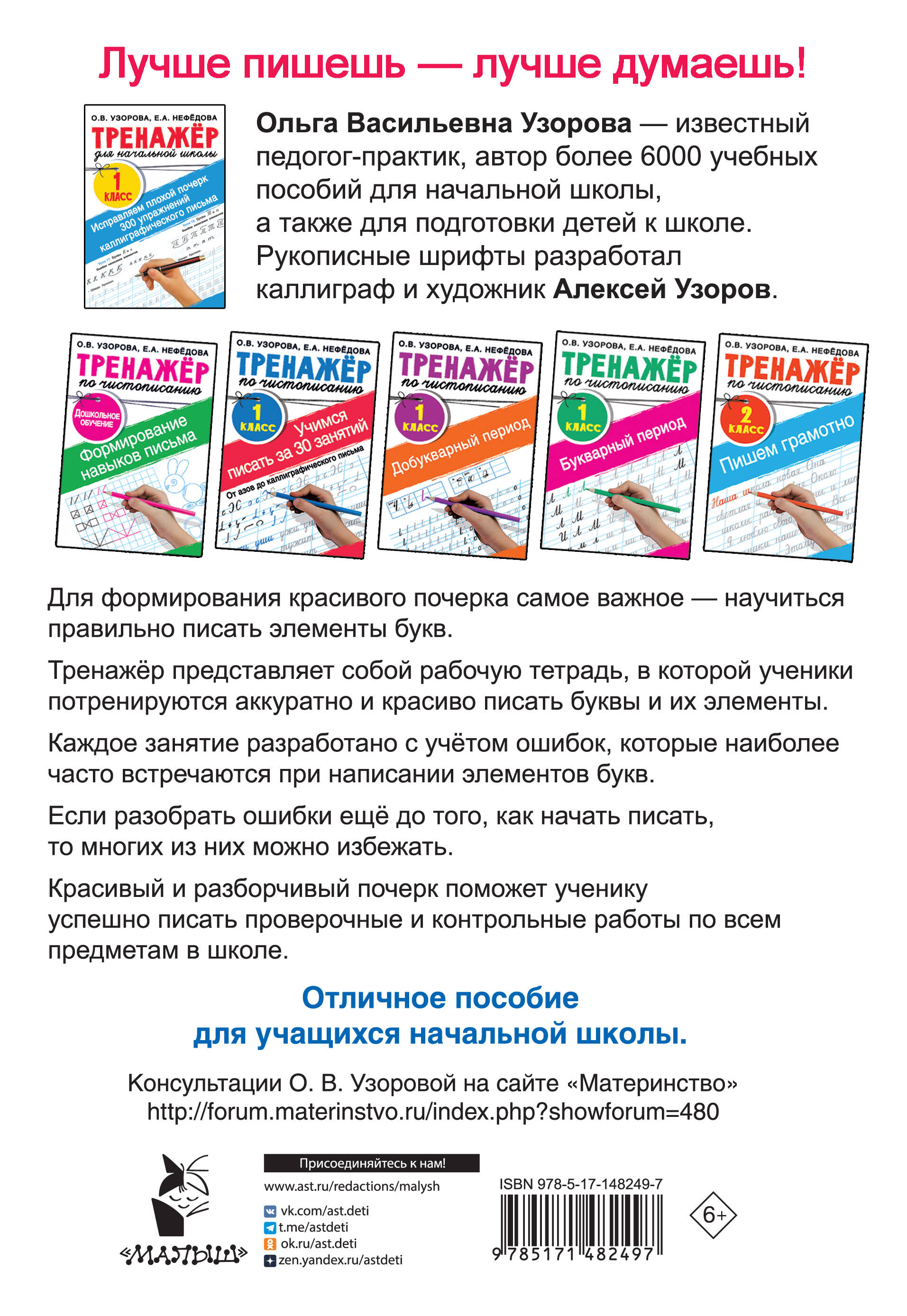 Учебное пособие «Исправляем плохой почерк. 300 упражнений каллиграфического письма» представляет собой рабочую тетрадь, в которой ученики потренируются аккуратно и красиво писать буквы, их элементы и варианты соединений. Ребёнок сможет выработать красивый почерк, увеличить скорость письма и улучшить успеваемость.| Издательство | АСТ |