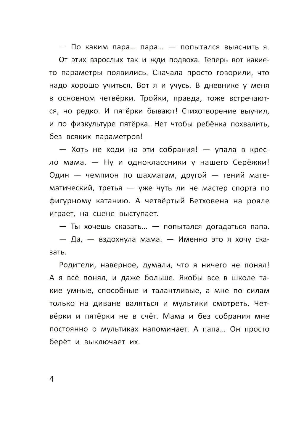 Эта история рассказана от лица Серёжи Травкина, ученика второго класса. У него любящие и очень занятые родители: мама - врач, а папа - сотрудник банка. Они хотят помочь сыну найти занятие, которое будет ему по душе. Из книги вы узнаете о том, как Серёжа «путешествует» среди кружков и секций, попадая порой в курьёзные и неожиданные ситуации, пытаясь найти «правильное» увлечение. Книга написана с юмором, она смешная и серьёзная одновременно.| Издательство | Феникс |