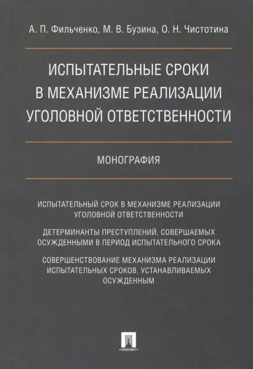 Монография посвящена теории и практике освобождения лица от отбывания уголовного наказания с применением мер, сопровождающихся установлением испытательного срока. В ней исследуется понятие испытательного срока и его юридическое значение. В контексте взаимосвязи условного осуждения, условно-досрочного освобождения, отсрочки отбывания наказания и принудительных мер воспитательного воздействия анализируется общее в содержании данных мер и определяются направления унификации правовых условий их применения. Законодательство приведено по состоянию на январь 2018 г. Данная работа представляет интерес для научных работников, аспирантов (адъюнктов), студентов и слушателей юридических вузов, а также практических работников, обеспечивающих реализацию мер уголовной ответственности.