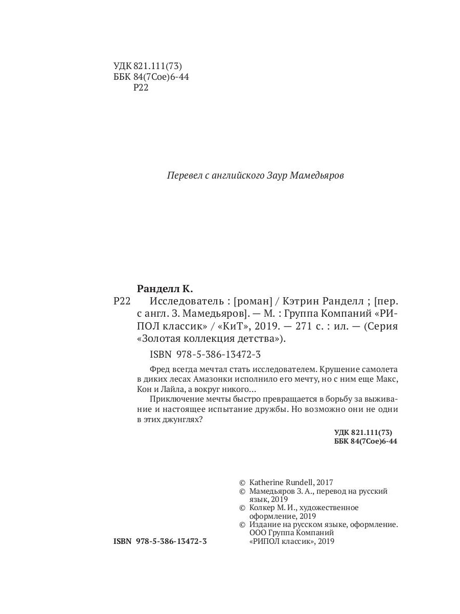 Фред всегда мечтал стать исследователем. Крушение самолета в диких лесах Амазонки исполнило его мечту, но с ним еще Макс, Кон и Лайла, а вокруг никого... Приключение мечты быстро превращается в борьбу за выживание и настоящее испытание дружбы. Но, возможно, они не одни в этих джунглях?| Издательство | Рипол Классик |