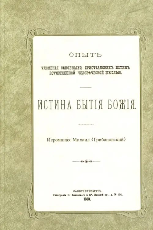 Репринтное воспроизведение издания 1888 года «Истина бытия Божия. Опыт уяснения основных христианских истин естественной человеческой мыслью» иеромонаха, в будущем епископа, Михаила (Грибановского). Содержание данного труда состоит в том, чтобы показать истинность христианского понятия о бытии Бога, то есть, что это понятие вполне соответствует Безусловному Бытию, как оно есть само в себе - в богословских и философских категориях.