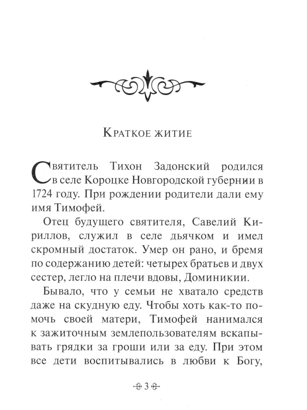Данная работа представляет собой сборник изречений великого православного святителя Тихона Задонского на различные духовно-нравственные темы, взятые из его творений и расположенные в алфавитном порядке. Издание рассчитано на широкий круг православных читателей.| Издательство | Благовест |