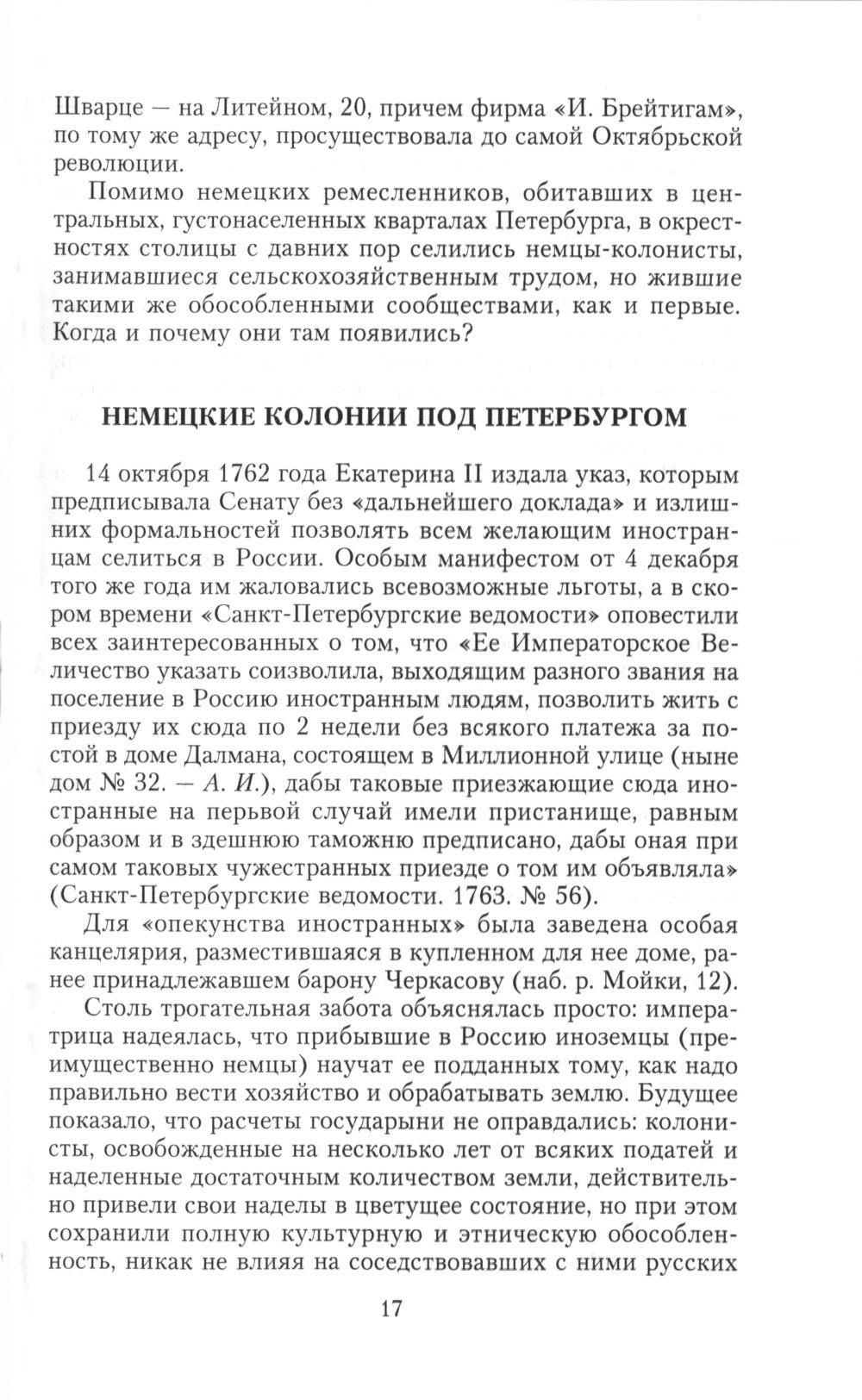 В этой книге собраны очерки Анатолия Иванова, посвященные российской истории, начиная с основания Санкт-Петербурга. На ее страницах увлеченного читателя ожидает удивительное разнообразие: прогулки по старым и современным улицам Северной столицы, знакомство с бытом и нравами XVII - начала XX столетий, в том числе и глазами иностранцев, возможность окунуться в атмосферу минувших дней. Встречи с примечательными личностями - яркими представителями своего времени, а то и вовсе его опередившими. Старинные развлечения различной степени приятности, курьезные случаи и воспоминания мемуаристов, запечатлевших события и слухи ушедших годов на бумаге. Написанные живо и ярко, составленные на основе исторических документов, писем и дневников, рассказы поведают о самых разных людях, оставивших свой след в истории, - государственных деятелях, дипломатах, военачальниках, путешественниках и многих других, и о местах, по которым им довелось ходить.| Издательство | Центрполиграф |