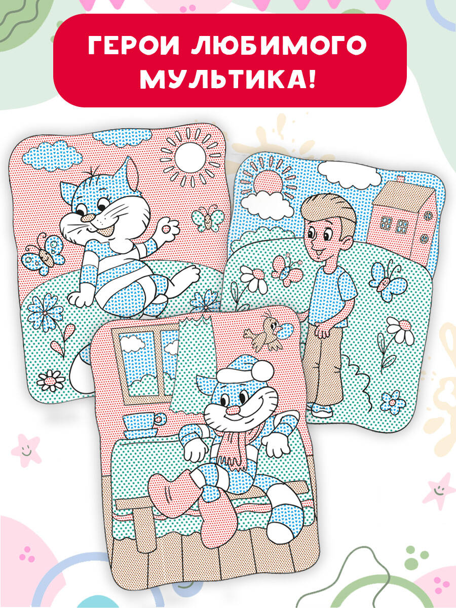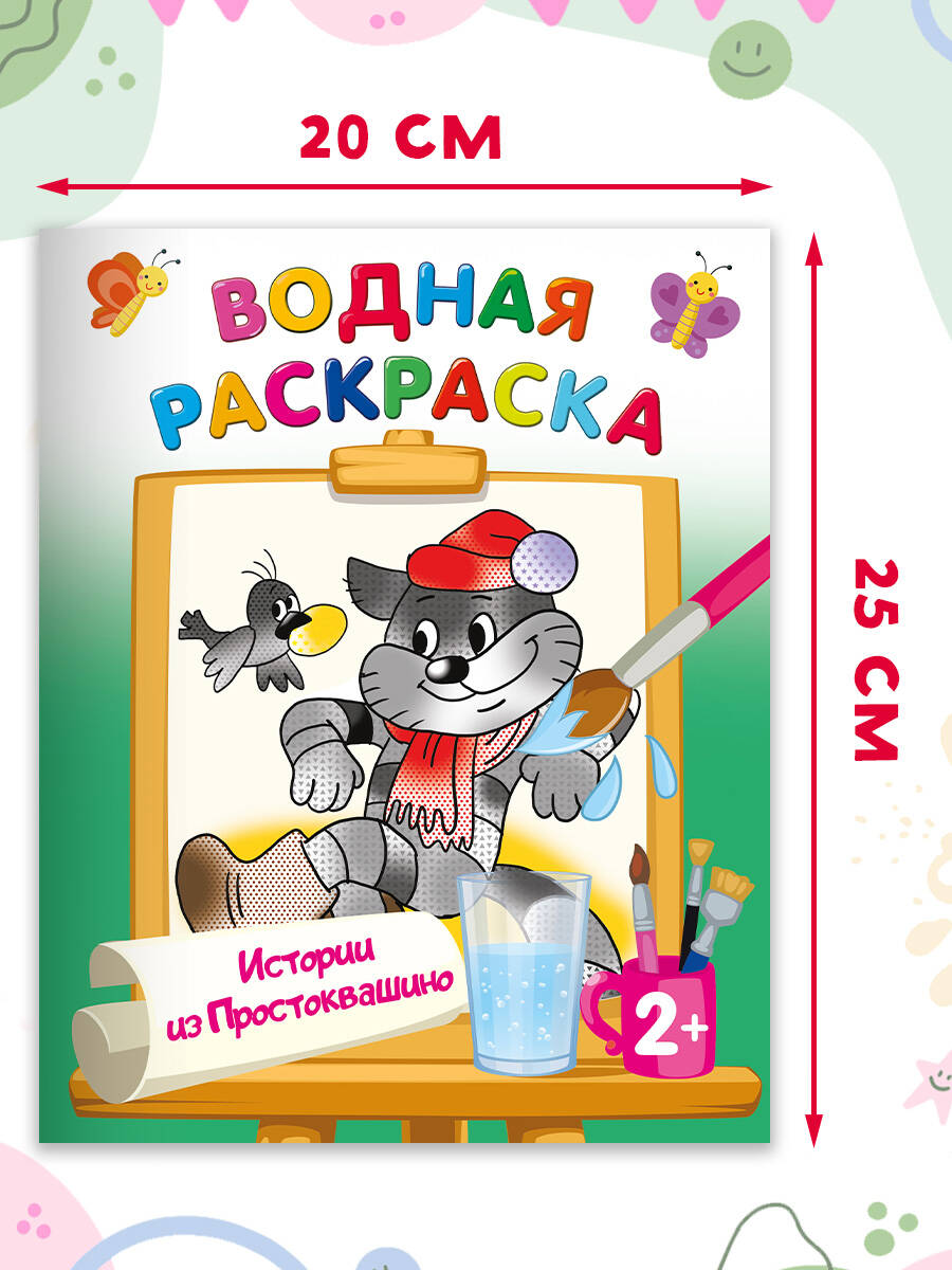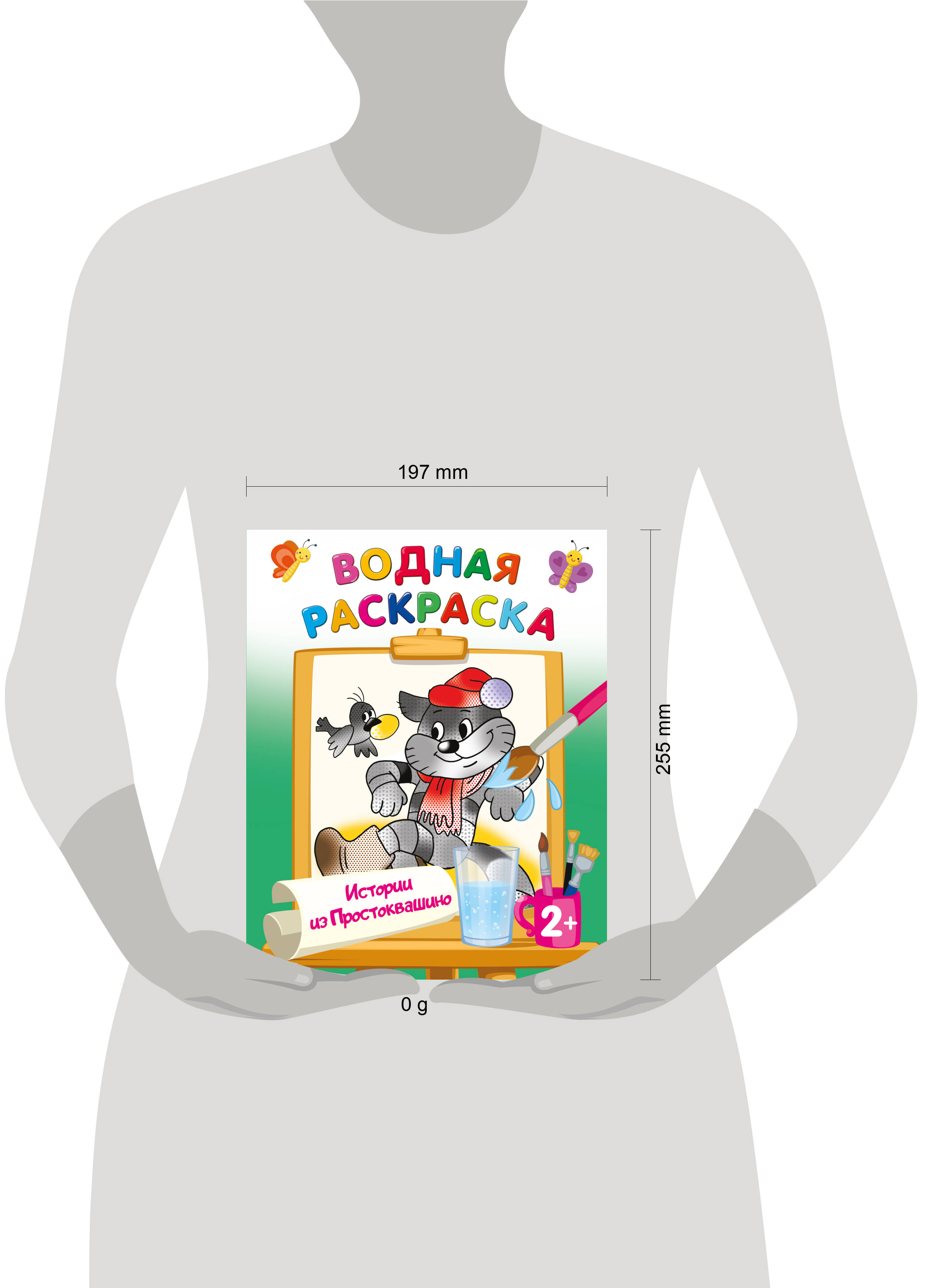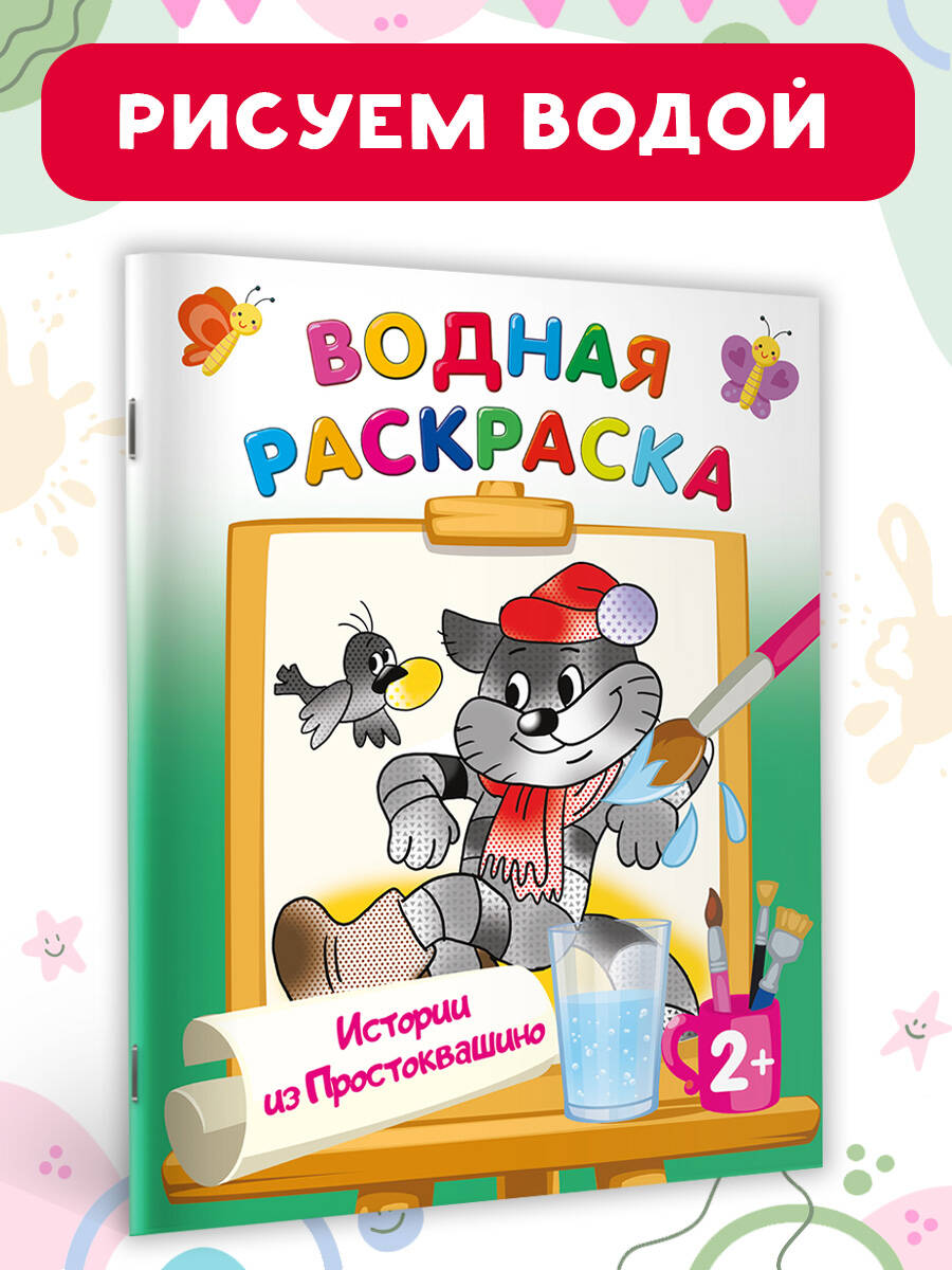 В серии «Водные раскраски с любимыми героями» - картинки из любимого мультика! На страницах - Дядя Фёдор, пёс Шарик, кот Матроскин и все-все-все из Простоквашино. Лёгким движением руки обычный рисунок превращается… в настоящий шедевр! Малышу понадобится одна лишь влажная кисточка и, конечно же, хорошее настроение. Водная раскраска - это простая техника для решения сложных задач: ребёнок учится концентрировать внимание, получает представление о форме и цвете, тренирует мелкую моторику и, конечно, радуется, глядя на свой рисунок. Картинка не может не получиться! Замечательные иллюстрации из любимых мультиков. Развивающие задания. Качественная бумага. Удобный для ребёнка размер книги. Благодаря ярким и весёлым рисункам каждое задание станет маленькой игрой. Раскрашивать картинки водой - не только увлекательное, весёлое, но и очень полезное занятие. • Развиваем мелкую моторику и оттачиваем координацию движений: малыш учится аккуратно проводить мокрой кисточкой по областям для раскрашивания; • расширяем кругозор - обсуждаем сюжеты и любимых персонажей; • изучает базовые цвета и оттенки, которые получаются при их смешивании; • малыш проникается интересом к рисованию при создании своих первых художественных шедевров; • развиваем речь, внимание, восприятие, воображение; • знакомим с окружающим миром, формируем познавательный интерес; • стимулируем логическое и образное мышление; • формируем представление о предметах, их цвете, форме и размере; • тренируем зрительную память, концентрацию внимания; • воспитываем интерес к изобразительному искусству: • улучшаем эмоциональное состояние маленького художника. Нужна только мокрая кисточка - раскрашиваем, играем, развиваемся!