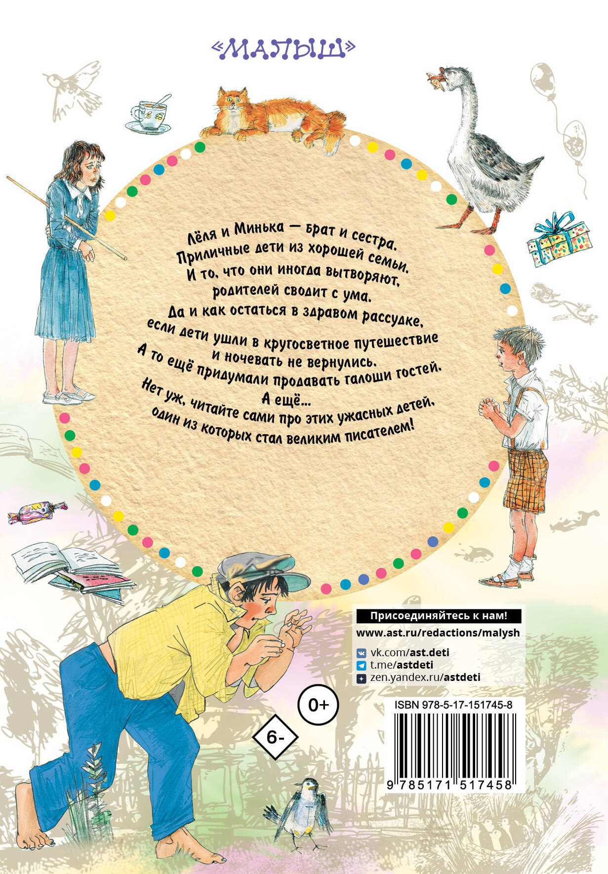 Лёля и Минька - брат и сест ра. Приличные дети из хорошей семьи. И то, что они иногда вытворяют, родителей сводит с ума. Да и как остаться в здравом рассудке, если дети ушли в кругосветное путешествие и ночевать не вернулись. А то ещё придумали продавать галоши гостей. А ещё… Нет уж, читайте сами про этих ужасных детей, один из которых стал великим писателем!| Издательство | ИЗДАТЕЛЬСТВО "АСТ" |