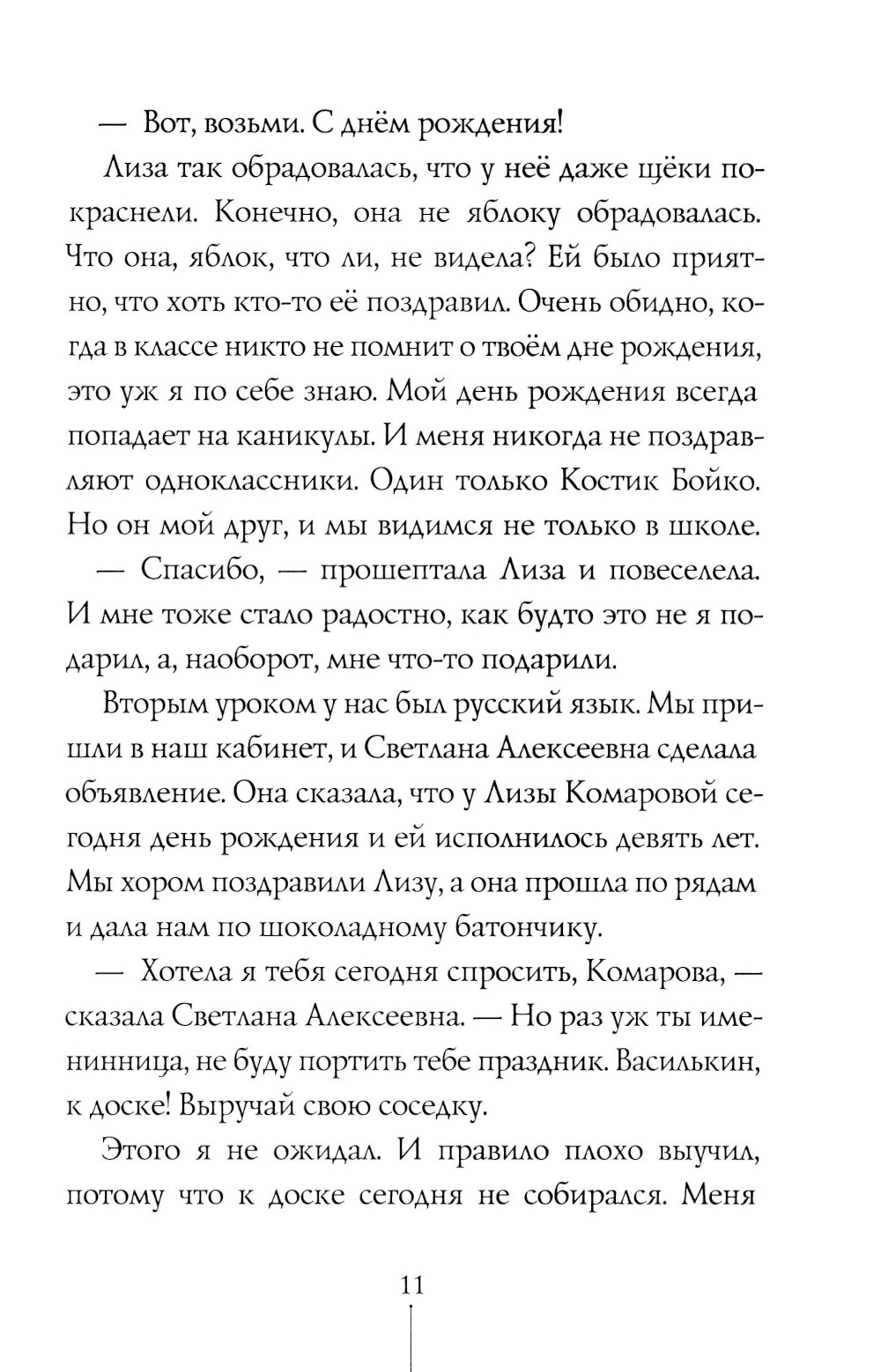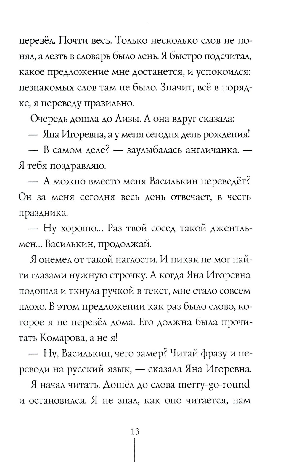 В сборник вошли рассказы про школьную жизнь, которые ранее выходили в «КомпасГиде» отдельными книгами. «К доске пойдёт... Василькин!» - это истории про третьеклассника Диму, который попадает в смешные ситуации. То он на пару с другом придумывает весёлый розыгрыш на первое апреля, то решает во что бы то ни стало научиться играть на гитаре к Новому году, то на собственном опыте испытывает, что означает выражение «гора с плеч». Все эти случаи дают ему какой-то урок - из тех, что ни за что не получишь во время «настоящих» уроков. «Это наш 4 ,,Н"» - рассказы про необыкновенный класс? С одной стороны - да: ведь он научный. С другой стороны ребята из 4 «Н» похожи на всех четвероклассников в мире: находчивые и непослушные, надёжные и неугомонные... Каждый юный читатель узнает себя в одном из двадцати двух учеников. Виктория Ледерман пишет легко и увлекательно. Поэтому её книги становятся настоящими хитами и прочно вошли в круг чтения современного школьника.| Издательство | ИД КомпасГид |