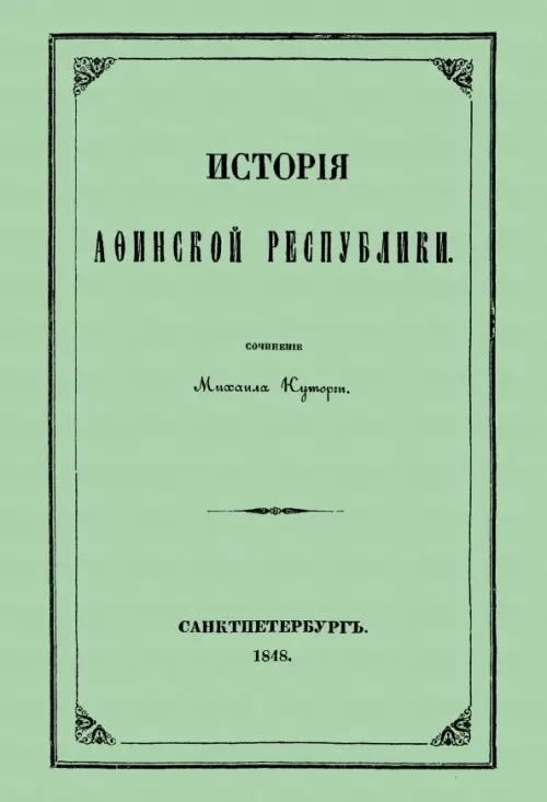 Репринт с издания. СПб. , 1848. С отдельной картой и 3 большими родословными таблицами. Основное внимание автор уделил политической борьбе аристократии и демократии в Греции и в Афинах. Михаил Семёнович Куторга (1809-1886) - российский историк-эллинист, зачинатель русского профессионального антиковедения, первый самостоятельный русский исследователь древнегреческой истории. Профессор истории С. -Петербургского (1844-1869) и Московского (1869-74) университетов, член-корреспондент Петербургской АН (1848). В своей научной деятельности особое внимание уделял истории Афин V-IV веков до н. э. , в частности времени становления и развития афинской демократии.