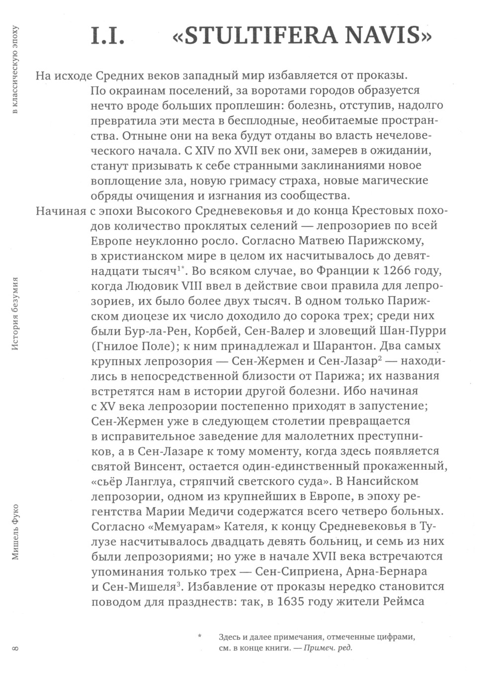 В основу данной книги, являющейся частью амбициозного «археологического» проекта французского теоретика и исследователя Мишеля Фуко (1926-1984), легла докторская диссертация, которую он написал, проработав несколько лет в психиатрических больницах. «История безумия в классическую эпоху» (1961) - это попытка проанализировать и интерпретировать представления о сущности сумасшествия, бытовавшие в европейской культуре XVII-XIX веков, предпринятая, чтобы обнажить генеалогию психиатрической практики XX века. Фуко, обращаясь к средневековым медицинским трактатам, народным суевериям прошлого и литературным образам, задается вопросом, как менялось представление о безумии и отношение к нему в обществе. Как безумие стало болезнью, подлежащей специализированному лечению? Как появился на свет человек разумный, взявшийся судить безумного?| Издательство | Ад Маргинем Пресс |
