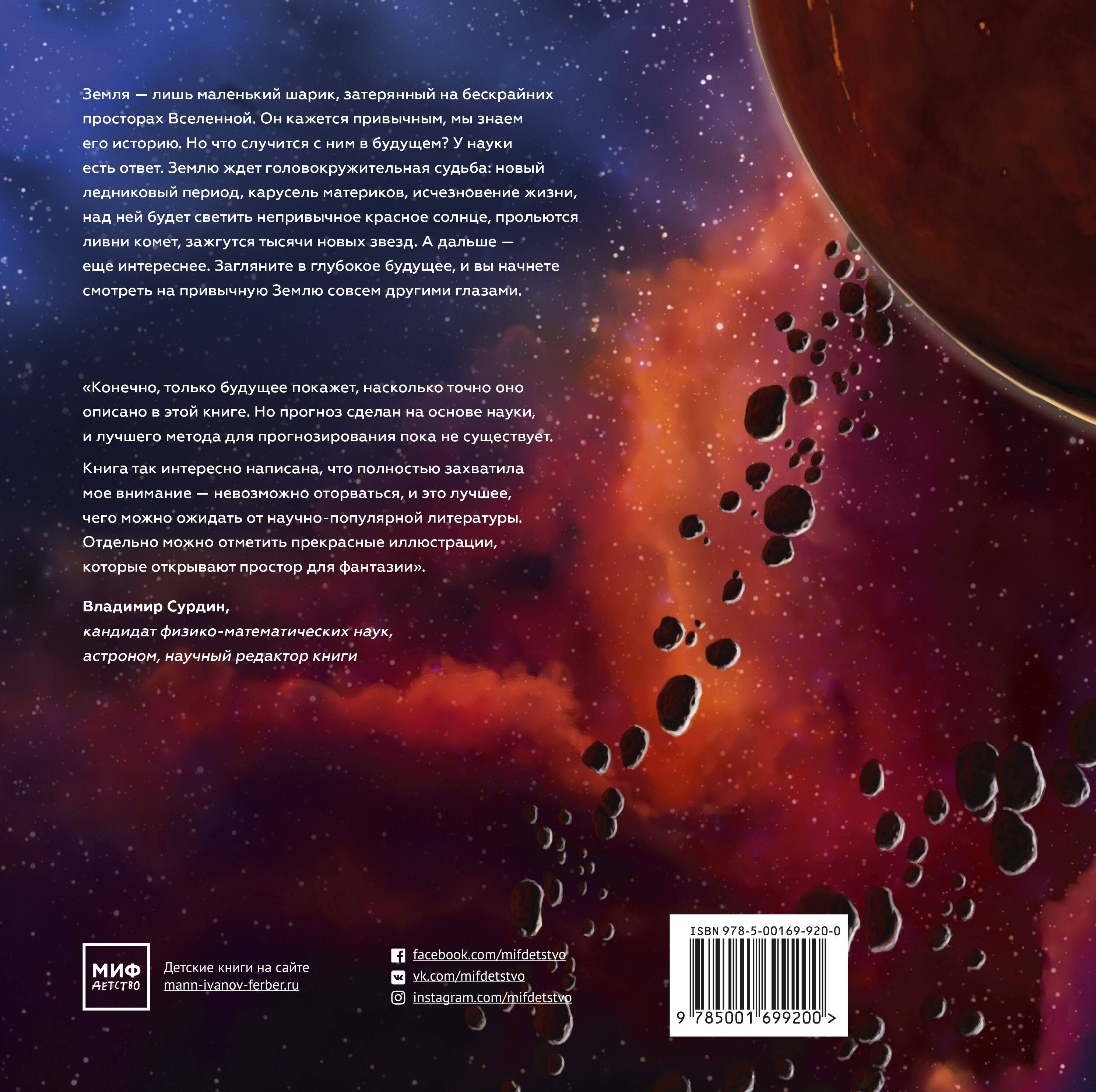Будущее... Что там и что нас ждет? Человек испокон веков задается этим вопросом и строит гипотезы о грядущей катастрофе. Но только научные открытия последних десятилетий приоткрывают завесу тайны и могут предложить стройную гипотезу. Вместе с этой книгой вы отправитесь в путешествие во времени и своими глазами увидите взрыв Солнца и гибель Земли, слияние галактик и поглощение звезд черными дырами. Вы проследите, как этап за этапом жизнь вернется в воду, а затем и вовсе исчезнет. Вы отправитесь в путешествие по Вселенной и узнаете ее историю. Так что же будет с человечеством? Неужели все погибнут? У людей есть шанс вечной жизни, потому что мы умнейшие создания на нашей планете: мы можем осознать себя и Вселенную, а значит, и избежать великой катастрофы. Для кого эта книга: Для детей от 9 лет Для тех, кто хочет узнать о Вселенной и нашей планете больше. Для тех, кто хочет посмотреть на Землю и историю людей с другой точки зрения. Для тех, кто восхищается безграничностью Вселенной. Для тех, кому понравилась книга "История Земли". Фишки книги: - Гипотеза сформулирована на основе последних научных открытий. - Научный редактор книги - кандидат физико-математических наук, астроном Владимир Сурдин. - Увлекательный рассказ, от которого невозможно оторваться. - Невероятные иллюстрации Андрея Атучина. - Расширяет мировоззрение: после прочтения Земля кажется маленькой точкой Вселенной, а человечество - всемогущим. Как читать книгу: Открыть книгу и погрузиться в невероятную атмосферу Вселенной и будущего. Пять причин прочитать книгу: От автора и иллюстратора бестселлера "История Земли". Научным редактором книги стал Владимир Сурдин. Возможность расширить свое мировоззрение и взглянуть на мир глазами великана. Захватывающая история, от которой невозможно оторваться. Непопулярные, но удивительные факты о Земле и Вселенной.| Издательство | МАНН, ИВАНОВ И ФЕРБЕР ООО |