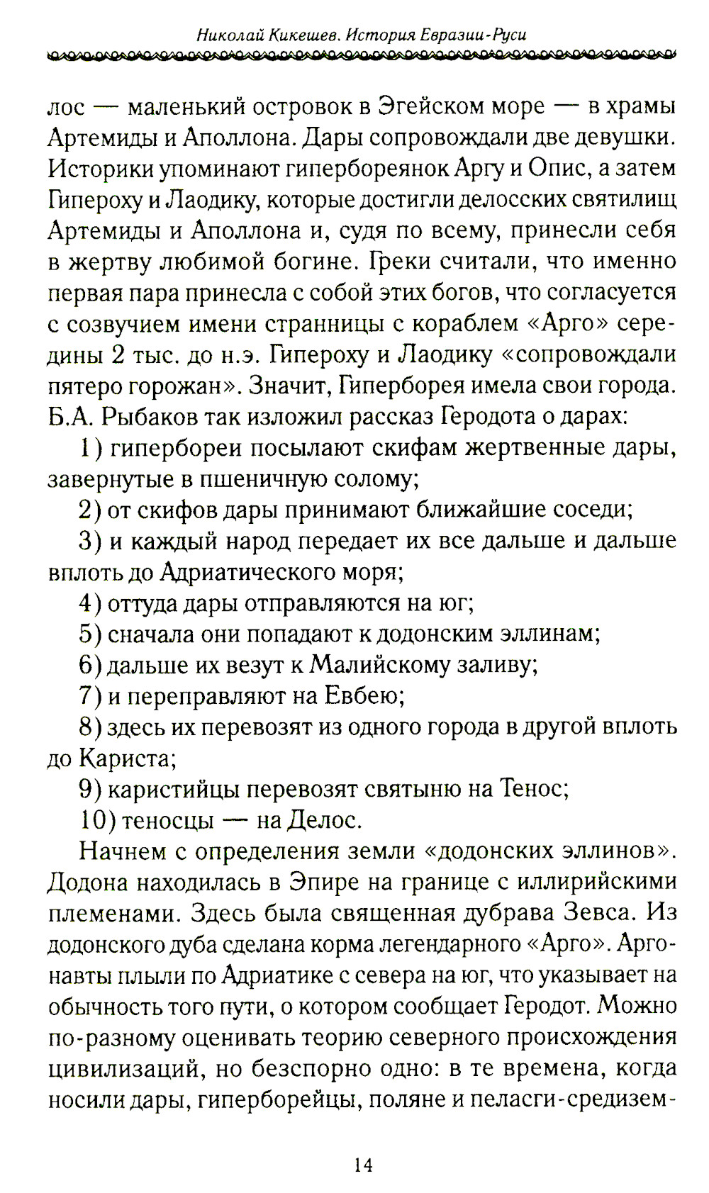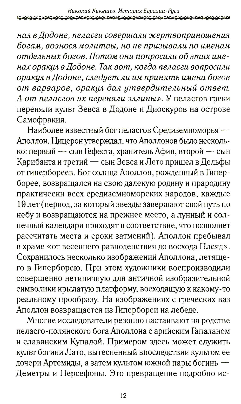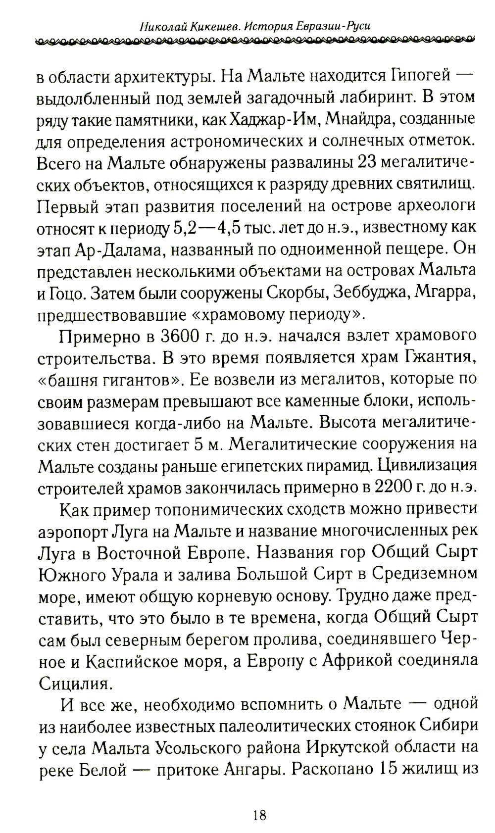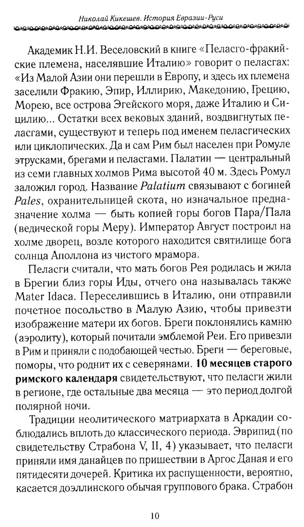Монография «История Евразии­Руси» - первое в отечественной и зарубежной историографии комплексное исследование географии, климата Четвертичного периода, зарождения и развития племен, народов и цивилизаций континента начиная с 50 тысячелетия до н.э. Сравнивая мифы и легенды народов мира о первых временах, их богах и героях с новыми достижениями в различных областях знаний автор пришел к выводу: арийским Семиречьем является Сибирь - сакральный центр Евразии. С помощью Дендрограммы 55 этнопопуляций, данных археологии, ДНК­-генеалогии, палеогеографии и лингвистики, этнонимики, топонимики и других наук определяются пути древнейших переселений народов из Сибири к современным местам обитания, фундаментальные основы генетической и духовной близости этносов Евразии. Пятая книга посвящена исследованиям истории варваров. Хотя этот этноним получил негативный оттенок, к варварам причисляются многие народы севера Евразии от Тихого до Атлантического океана. Изначально слово «вара» - солнечная вода. Варуна - бог космических вод. Сварга - рай арийского бога солнца Индры. В ведической мифологии Сварог - верховный небесный бог, управляющий течением жизни и всем мироустройством Вселенной.
