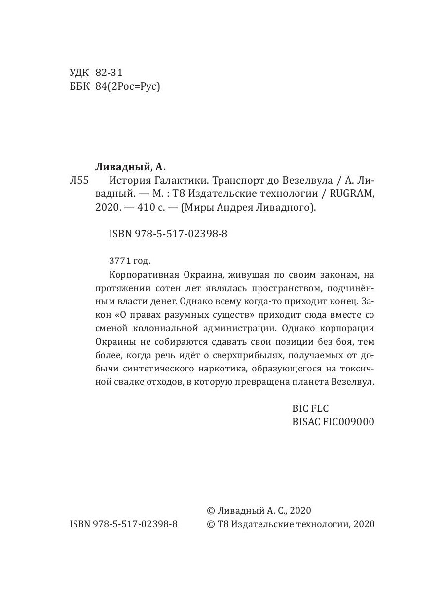 3771 год. Корпоративная Окраина, живущая по своим законам, на протяжении сотен лет являлась пространством, подчинённым власти денег. Однако всему когда-то приходит конец. Закон «О правах разумных существ» приходит сюда вместе со сменой колониальной администрации. Однако корпорации Окраины не собираются сдавать свои позиции без боя, тем более, когда речь идёт о сверхприбылях, получаемых от добычи синтетического наркотика, образующегося на токсичной свалке отходов, в которую превращена планета Везелвул.| Издательство | Т8 RUGRAM |