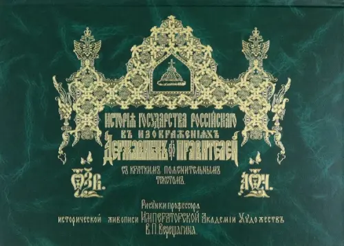 Факсимильное издание альбома рисунков выдающегося русского исторического живописца, художника-академиста, профессора Императорской Академии художеств Василия Петровича Верещагина (1835-1909) «История Государства Российского в изображениях Державных его правителей с кратким пояснительным текстом» воспроизводит издание Художественной типографии и фото-хемиграфической мастерской Эдуарда Гоппе, Санкт-Петербург.