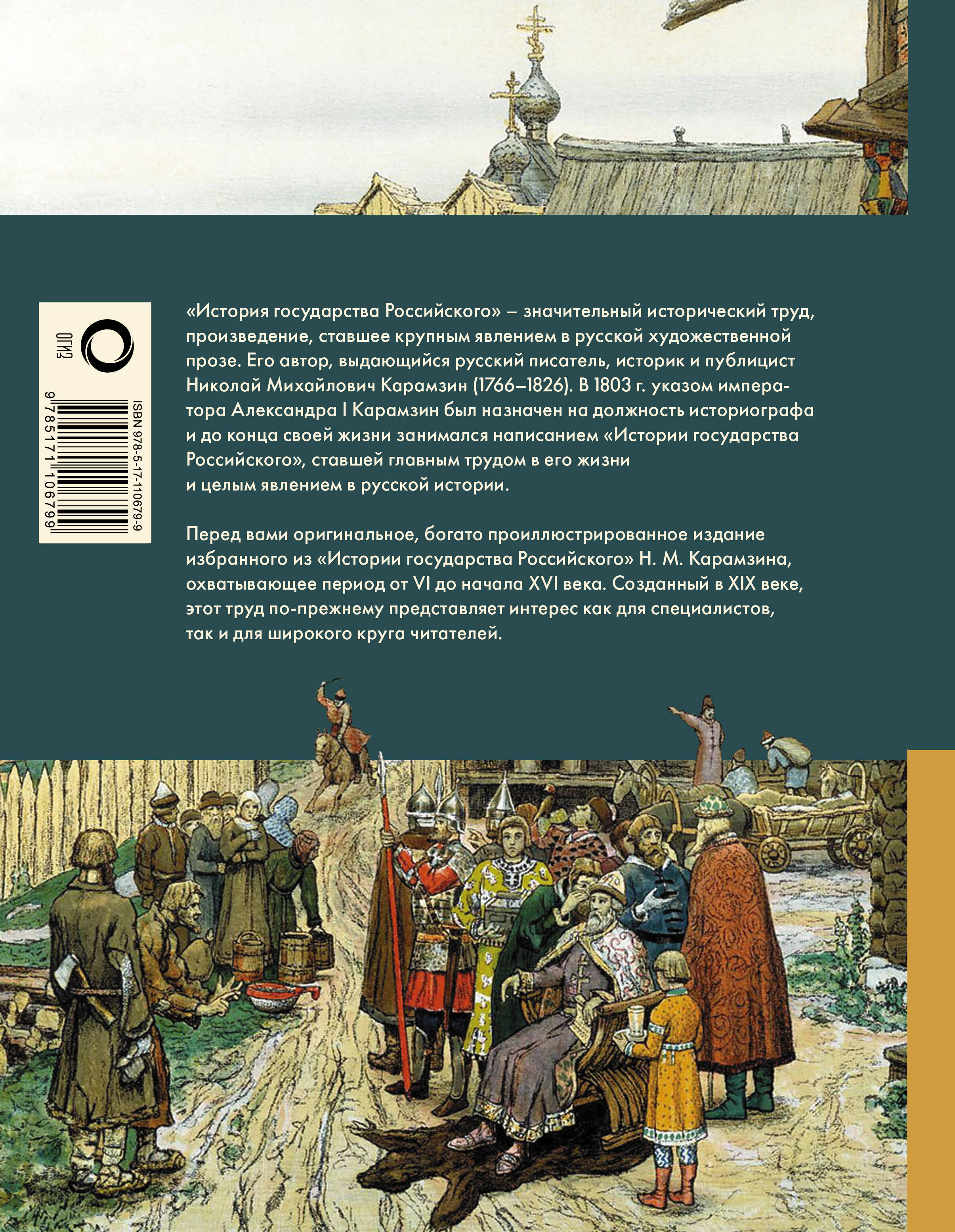 "История государства Российского" - значительный исторический труд, произведение, ставшее крупным явлением в русской художественной прозе. Его автор, выдающийся русский писатель, историк и публицист Николай Михайлович Карамзин (1766-1826). В 1803 г. указом императора Александра I Карамзин был назначен на должность историографа и до конца своей жизни занимался написанием "Истории государства Российского", ставшей главным трудом в его жизни и целым явлением в русской истории. Перед вами оригинальное, богато проиллюстрированное издание избранного из "Истории государства Российского" Н. М. Карамзина, охватывающее период от VI до начала XVI века. Созданный в XIX веке, этот труд по-прежнему представляет интерес как для специалистов, так и для широкого круга читателей.| Издательство | ИЗДАТЕЛЬСТВО "АСТ" |