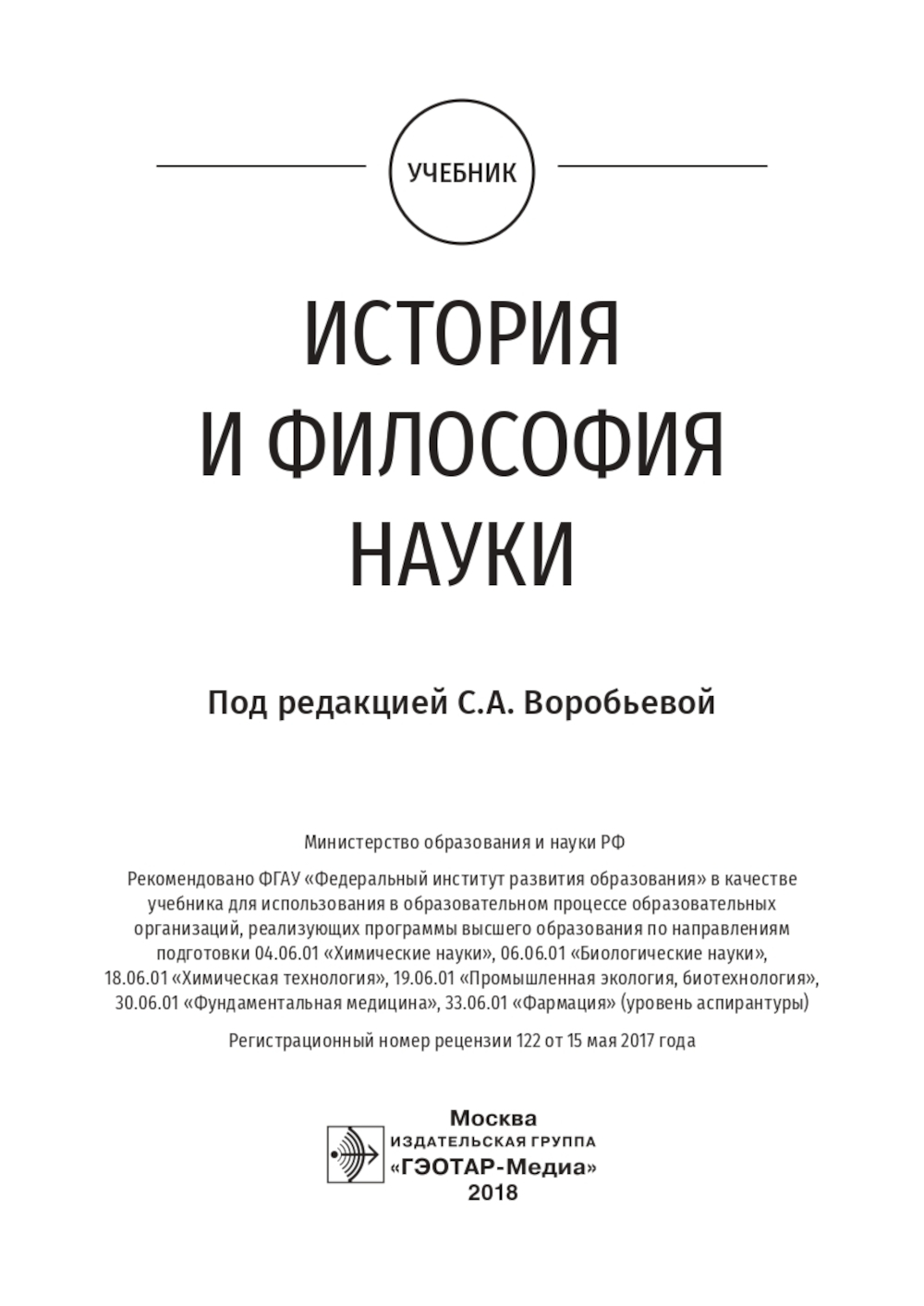 В учебнике рассмотрены критерии науки, исторические типы научной рациональности, структура, формы и методы научного познания, их эволюция и другие разделы дисциплины. В перечень основных тем включено определение природы науки и техники как социокультурных феноменов во всей их сложности и противоречивости, а также историко-методологические аспекты дисциплин медико-фармацевтического и биотехнологического профилей. Издание предназначено для аспирантов, обучающихся по дисциплине "История и философия науки", а также для всех интересующихся проблемами науковедения.| Издательство | ГЭОТАР-Медиа |