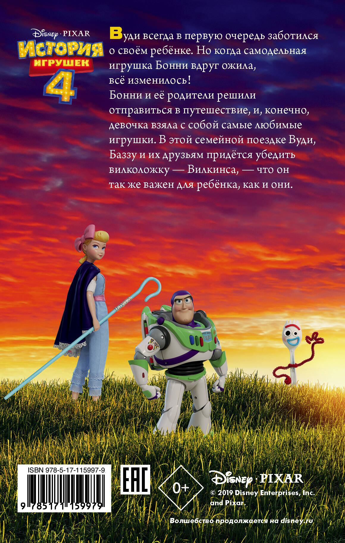 Вуди всегда в первую очередь заботился о своём ребёнке. Но когда самодельная игрушка Бонни вдруг ожила, всё изменилось! Бонни и её родители решили отправиться в путешествие, и, конечно, девочка взяла с собой самые любимые игрушки. В этой семейной поездке Вуди, Баззу и их друзьям придётся убедить вилколожку - Вилкинса, - что он так же важен для ребёнка, как и они.| Издательство | ИЗДАТЕЛЬСТВО "АСТ" |