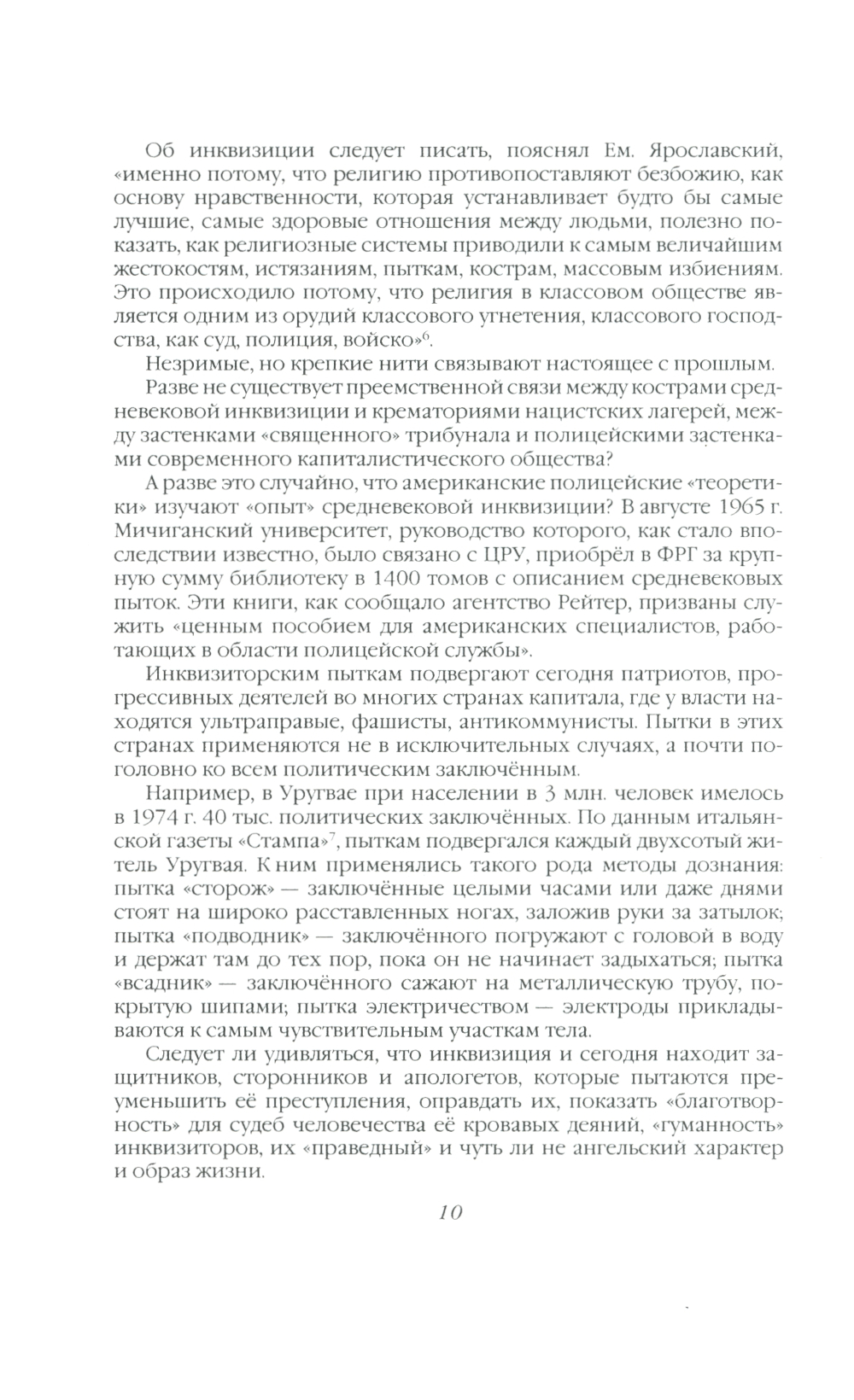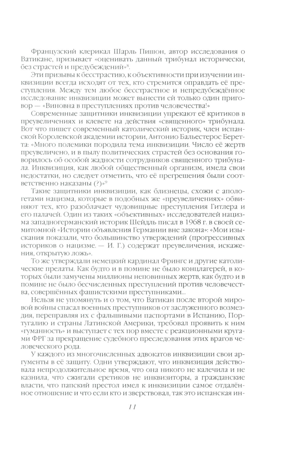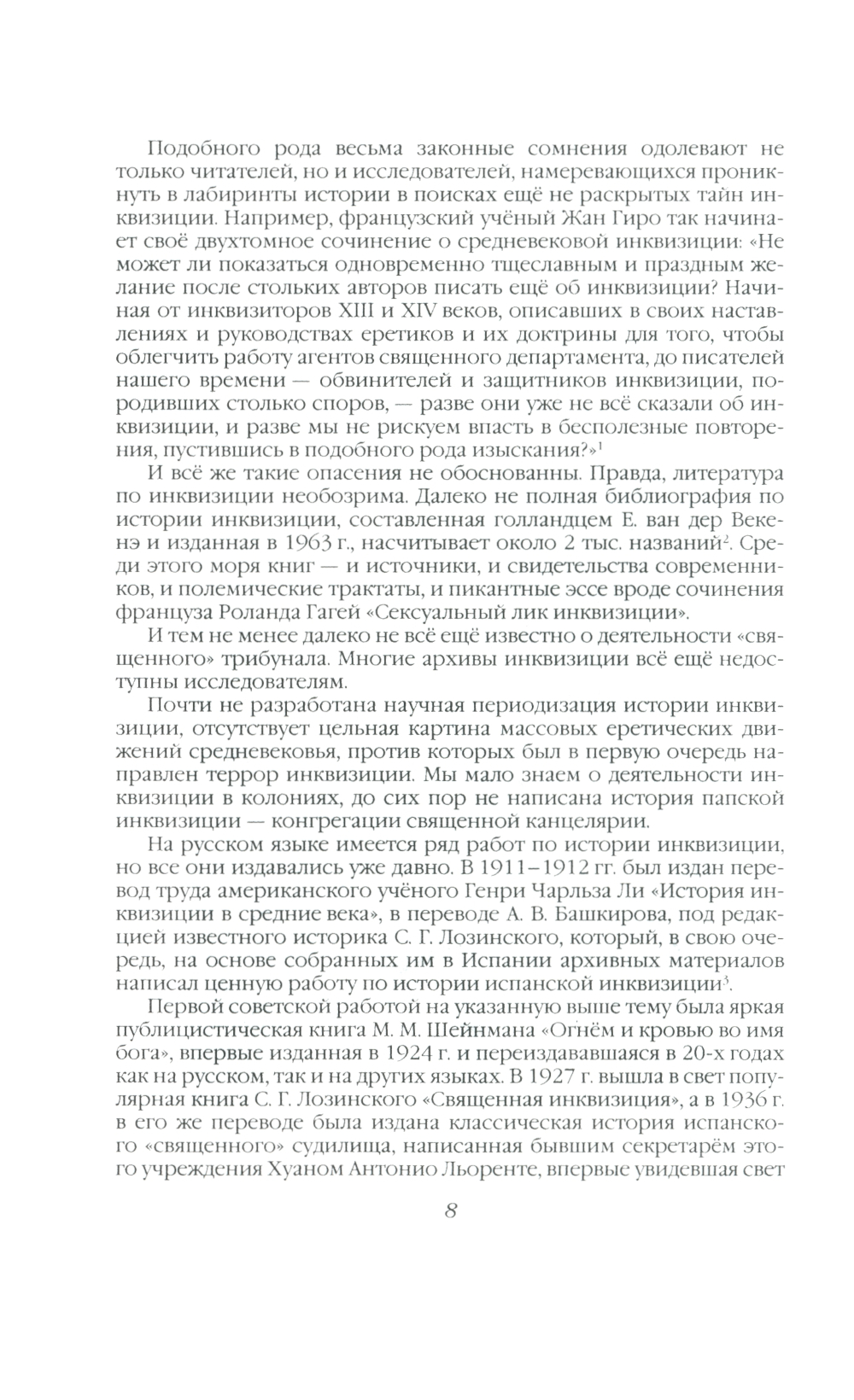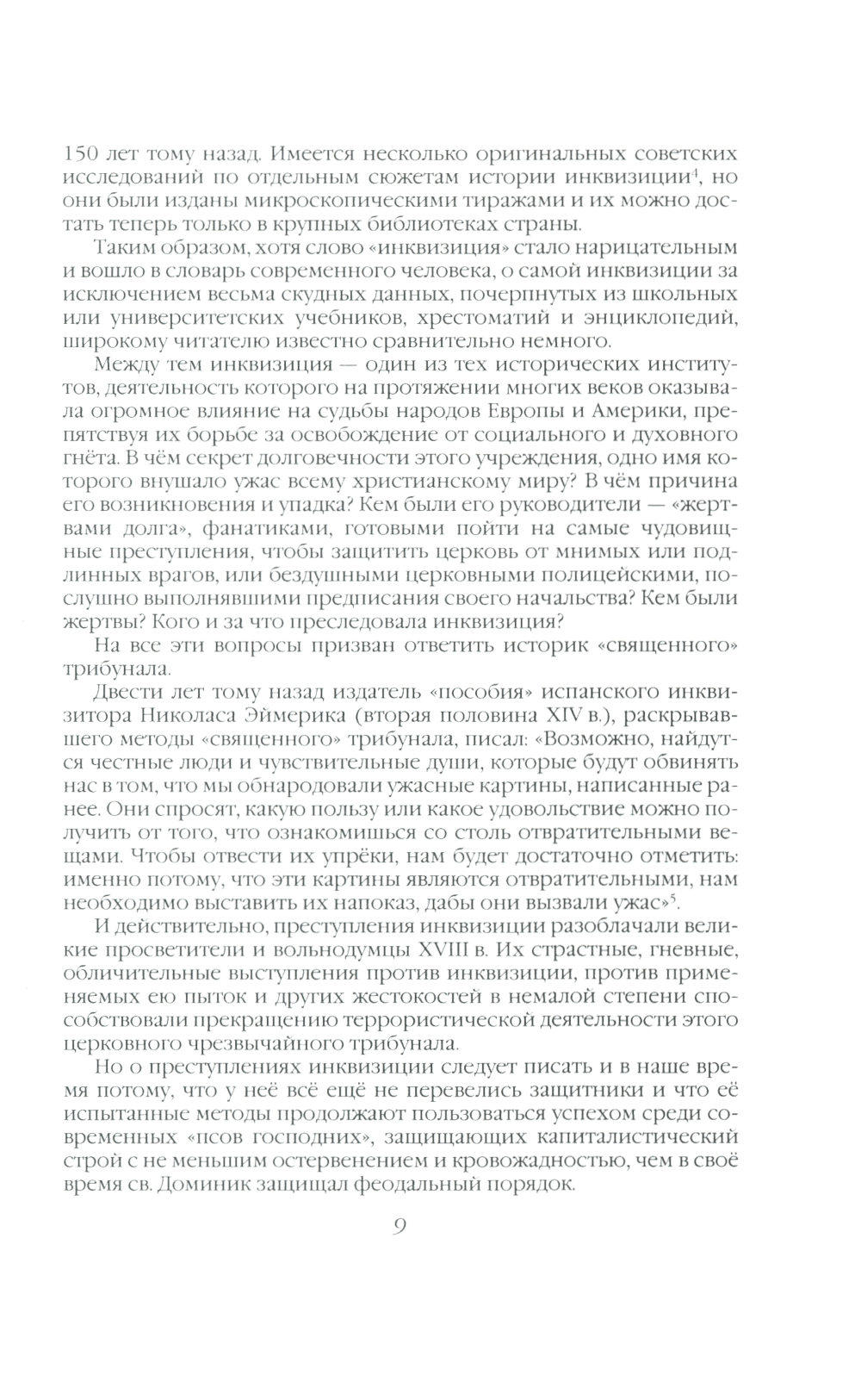 Трибунал высокой инквизиции столетиями наводил ужас на все просветлённые умы Европы. Инквизиторы не жалели никого: случайное слово, брошенное в таверне, неосторожное письмо, даже отказ есть свинину мог восприниматься как ересь. Пытки инквизиции были ужасны, а в её тюрьмах создавались нечеловеческие условия. Инквизиция стала первой в истории человечества полноценной тайной полицией. Она же разработала основные юридические и практические методы борьбы с инакомыслием: внедрение агентов-провокаторов, поощрение доносительства, подставные защитники в суде, пытки, используемые в некоторых странах до сих пор. Именно об этом нам расскажет книга одного из величайших советских учёных своего времени, дипломата, разведчика, большого специалиста по истории Ватикана и стран Латинской Америки Иосифа Ромуальдовича Григулевича.