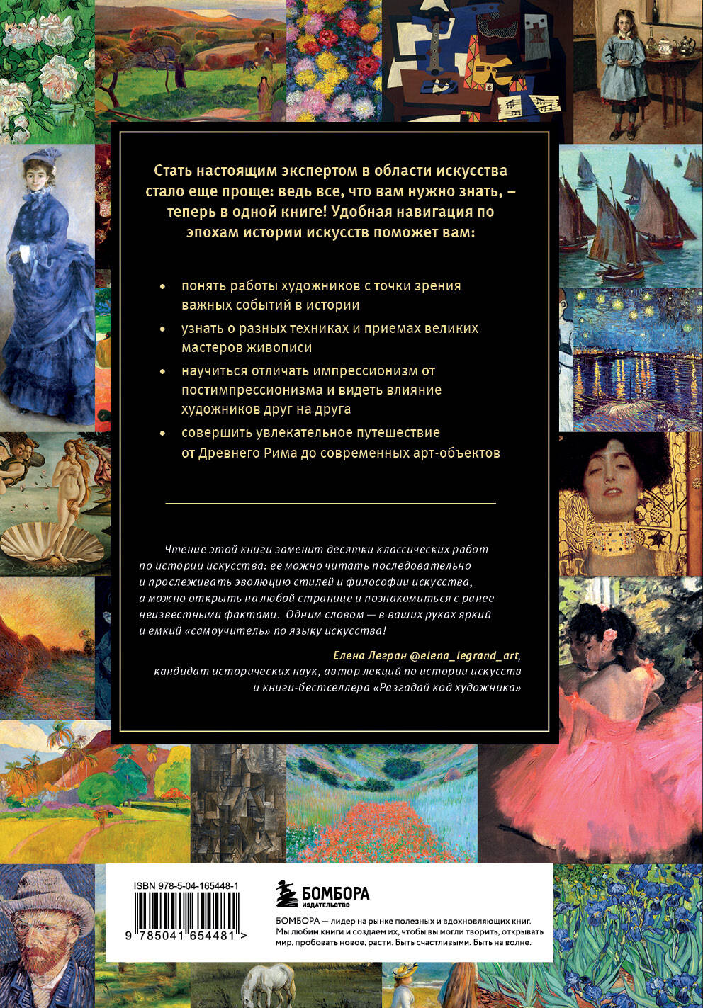 Эта книга станет незаменимым путеводителем в мир искусства с древнейших времен до наших дней. Она познакомит вас с главными произведениями живописи, скульптуры и архитектуры, начиная с древних греков и римлян и заканчивая современными концептуальными течениями XXI века. Многообразие стилей и направлений, удивительные открытия и необычные факты, кропотливо собранные известным историком искусства Джоном Финли, помогут понять и полюбить искусство. Обилие иллюстраций, схем и инфографики сделают путешествие в мир искусства по-настоящему увлекательным и запоминающимся. «Главное преимущество этой книги в том, что она многофункциональна и сможет заменить десятки классических работ по истории искусства! В нее можно вчитываться, а можно легко пробегать глазами, можно читать последовательно, прослеживая эволюцию стилей и философии искусства, а можно открыть на любой странице и познакомиться с ранее неизвестными фактами. Одним словом - все, что вы хотели знать об искусстве, и даже больше!» - Елена Смирнова-Легран, кандидат исторических наук, филолог и автор лекций об истории искусств и истории, автор блога elena_legrand_paris| Издательство | ООО "Издательство "Эксмо" |