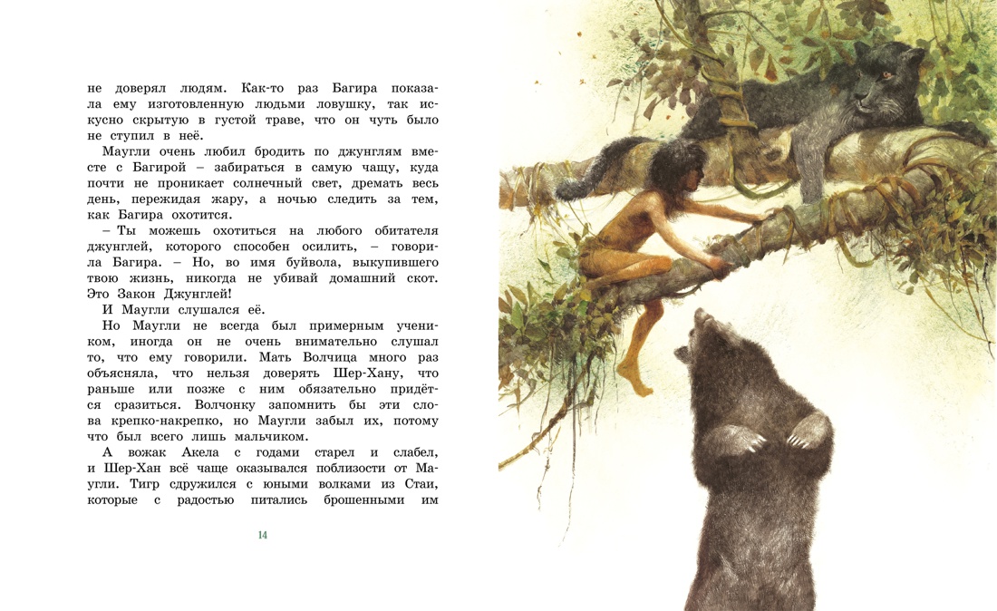 Знаменитая история Редьярда Киплинга в сокращённом изложении о человеческом детёныше Маугли, волею случая оказавшемся в волчьей стае и вынужденном бороться за своё существование. Великолепные иллюстрации Роберта Ингпена словно погружают читателей в таинственный мир джунглей, создавая ощущение реальности происходящего.| Издательство | Махаон |