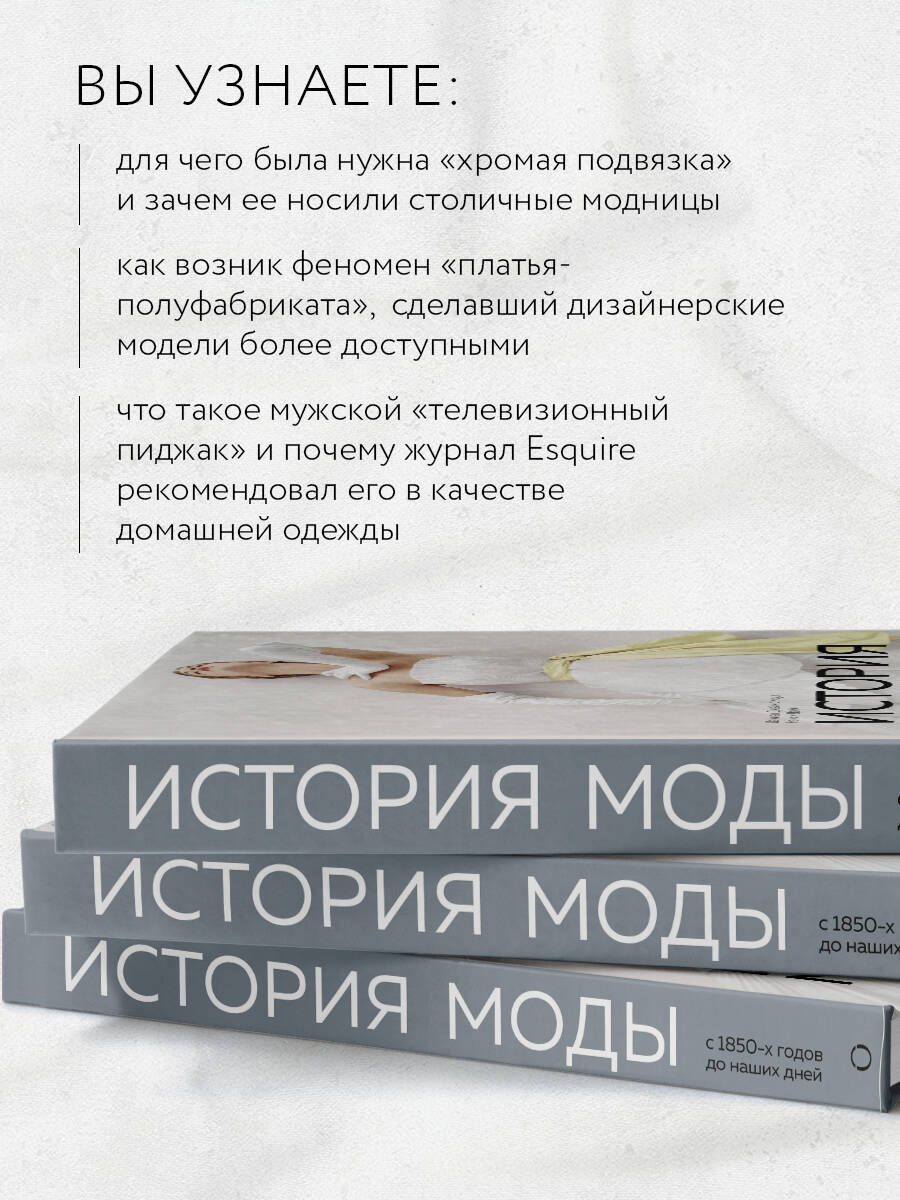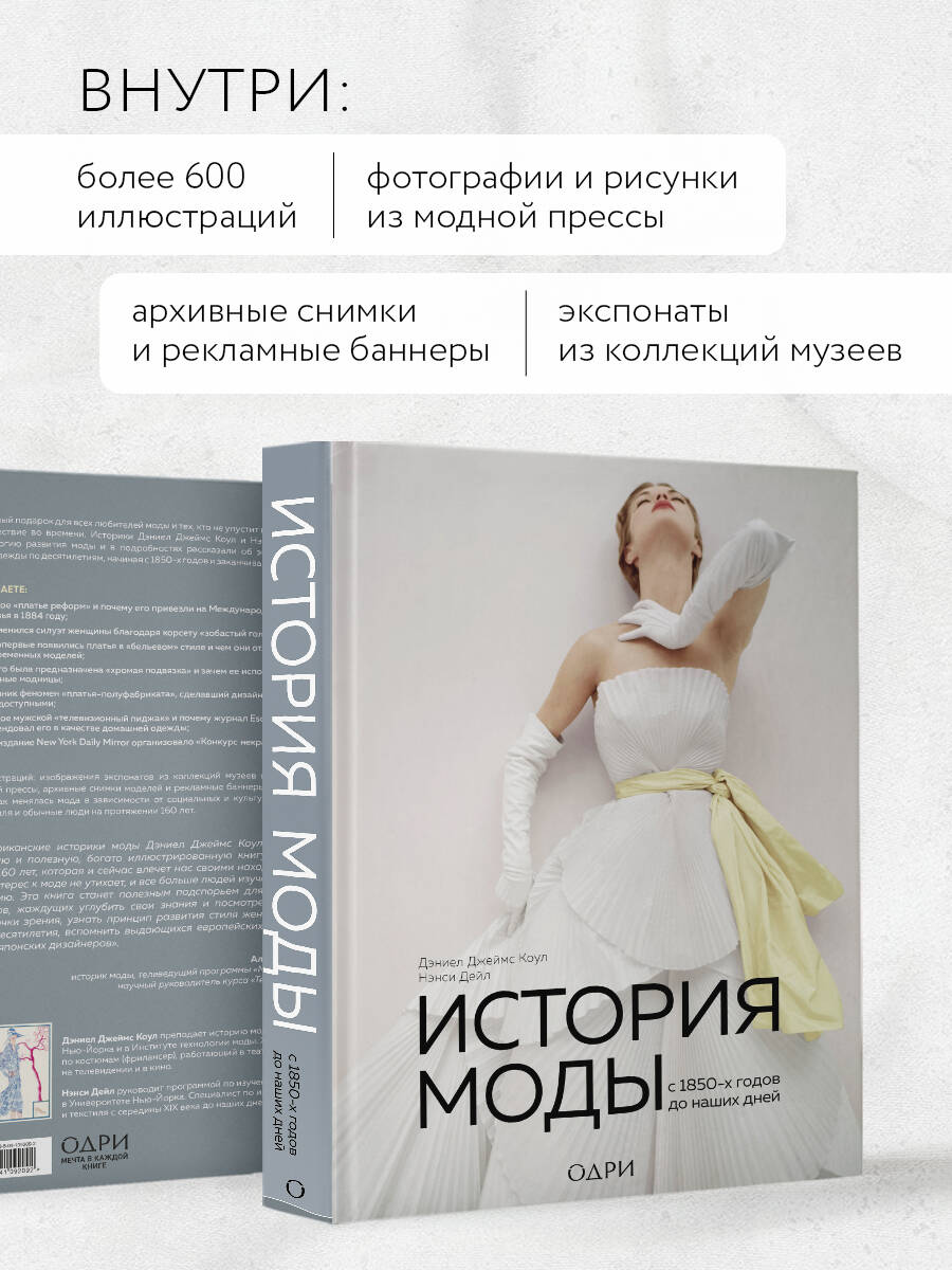 Дэниел Джеймс Коул - художник по костюмам, работающий в театре, на телевидении и в кино. Преподает историю моды в Университете Нью-Йорка и в Институте технологии моды. Нэнси Дейл - специалист по истории моды и текстиля с середины XIX века до наших дней. Руководит программой по изучению костюма в Университете Нью-Йорка. Эта книга - шикарный подарок для всех ценителей моды и тех, кто не упустит шанса отправиться в настоящее путешествие во времени. Историки Дэниел Джеймс Коул и Нэнси Дейл создали уникальную хронологию развития моды и в подробностях рассказали об эволюции женской, мужской и детской одежды по десятилетиям, начиная с 1850-х годов и заканчивая нашим временем. Вы узнаете: • что такое «платье реформ» и почему его привезли на Международную выставку здоровья в 1884 году; • как изменился силуэт женщины благодаря корсету «зобастый голубь»; • когда впервые появились платья в «бельевом» стиле и чем они отличались от современных моделей; • для чего была предназначена «хромая подвязка» и зачем ее использовали столичные модницы; • как возник феномен «платья-полуфабриката», сделавший дизайнерские модели более доступными; • что такое мужской «телевизионный пиджак» и почему журнал Esquire рекомендовал его в качестве домашней одежды; • зачем издание New York Daily Mirror организовало «Конкурс некрасивых девушек». Более 600 иллюстраций: изображения экспонатов из коллекций музеев моды, фотографии и рисунки из модной прессы, архивные снимки моделей и рекламные баннеры - благодаря этой книге вы узнаете, как менялась мода в зависимости от социальных и культурных трендов, как одевались иконы стиля и обычные люди на протяжении 160 лет. «Известные американские историки моды Дэниел Джеймс Коул и Нэнси Дейл написали удобную и полезную, богато иллюстрированную книгу, посвященную моде последних 160 лет, которая и сейчас влечет нас своими находками и стилем. У нас в стране интерес к моде не утихает, и все больше людей изучают ее историю, стилистику, теорию. Эта книга станет полезным подспорьем для всех неофитов и профессионалов, жаждущих углубить свои знания и посмотреть на мировую моду с другой точки зрения, узнать принцип развития стиля женской и мужской одежды сквозь десятилетия, вспомнить выдающихся европейских, американских, австралийских и японских дизайнеров». - Александр Васильев, историк моды, телеведущий программы «Модный приговор», научный руководитель курса «Теория моды» в МГУ| Издательство | ООО "Издательство "Эксмо" |