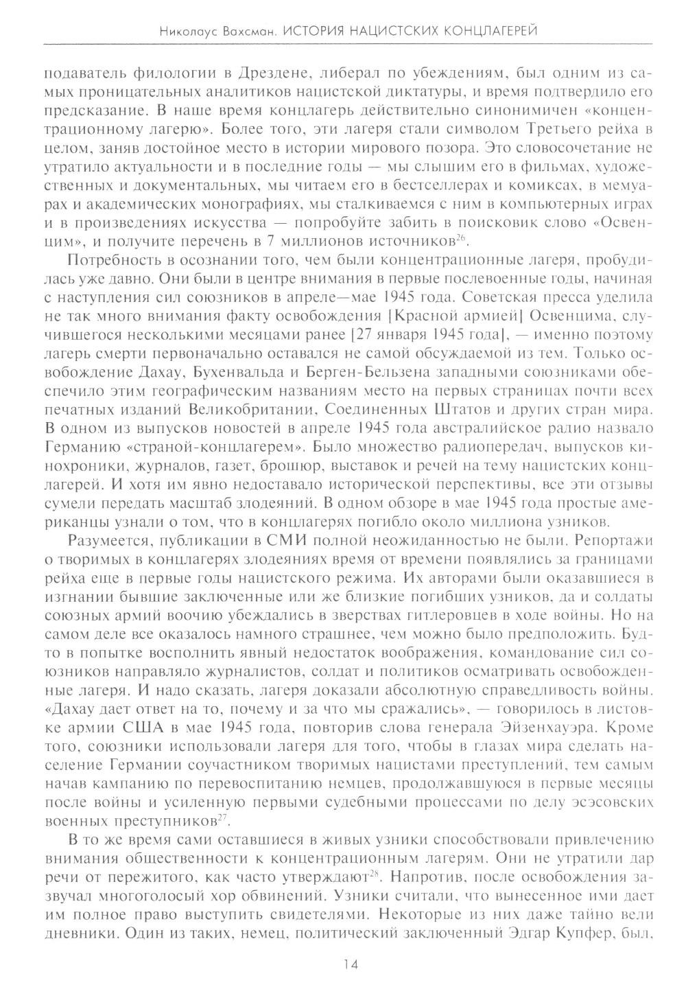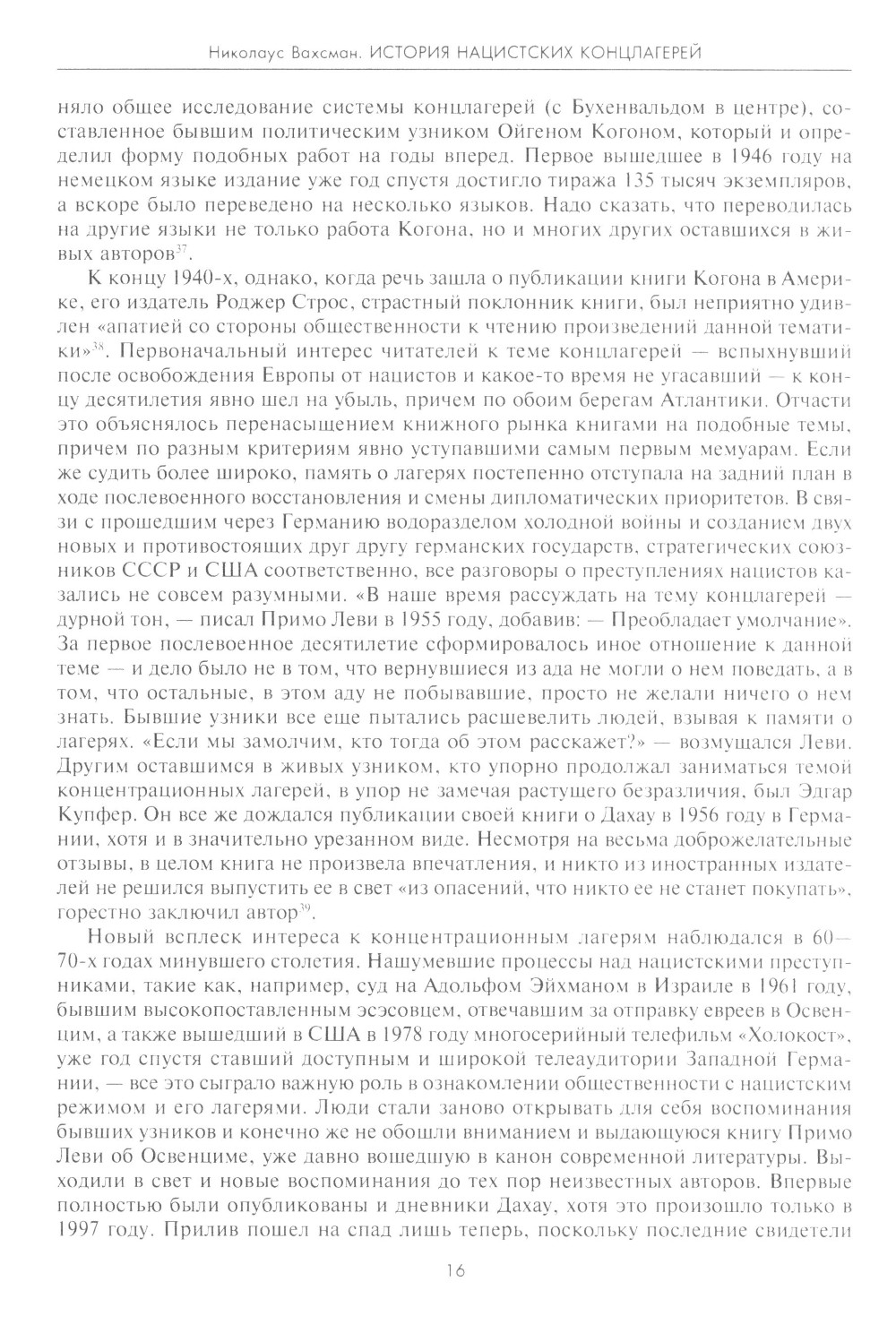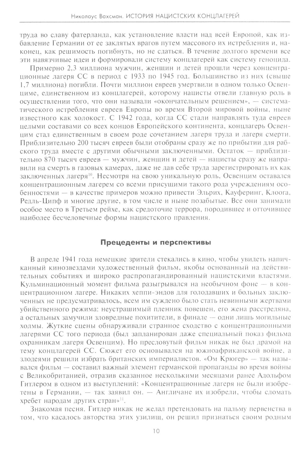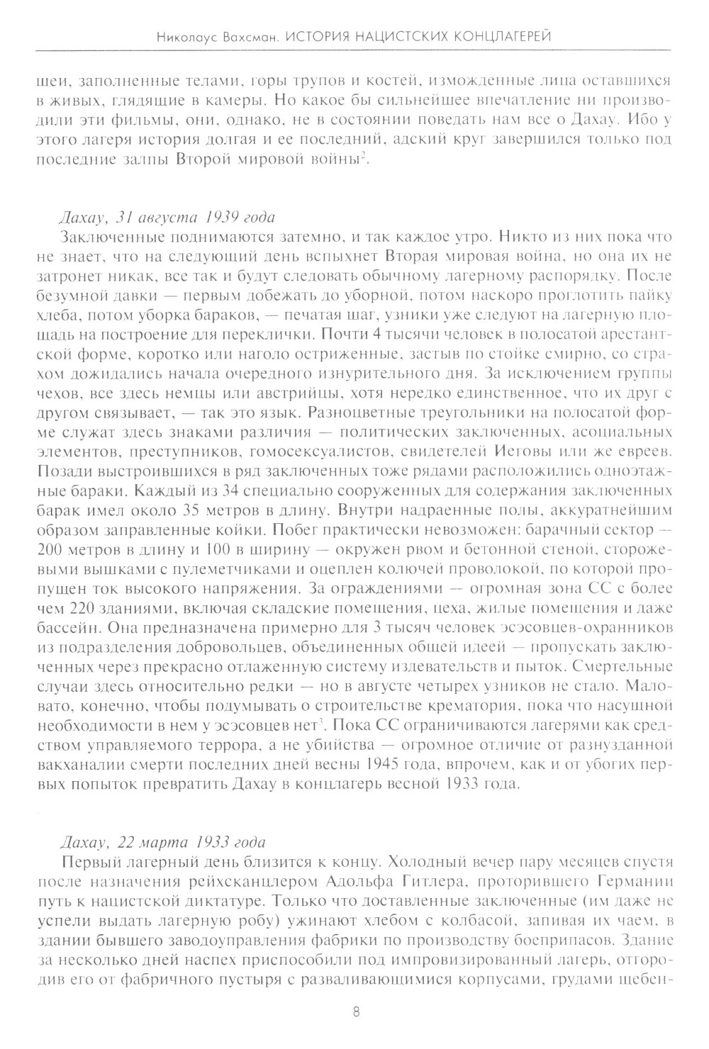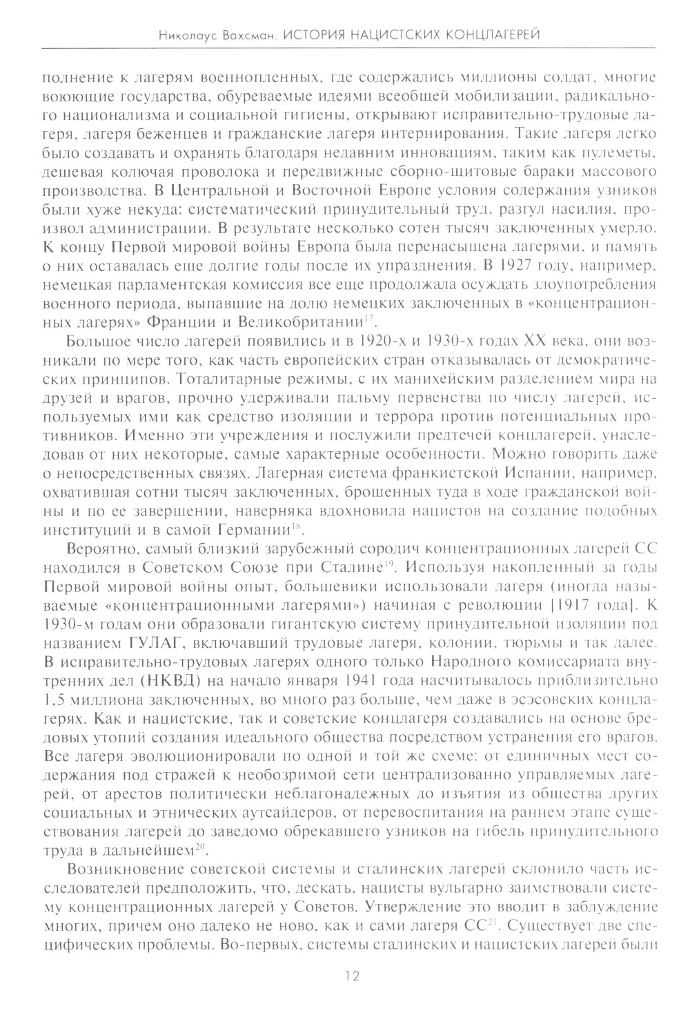 Известный историк, профессор Бирбекколледжа Лондонского университета Николаус Вахсман исследовал и представил полную историю нацистских концентрационных лагерей с 1933 по 1945 год. Основываясь на подлинных документальных материалах о лагерях Освенцим, Дахау, Заксенхаузен, Бухенвальд, Маутхаузен, Флоссенбюрг, Равенсбрюк и многих других (двадцать два крупных лагеря и более тысячи лагерейспутников опутали Германию и Европу), автор представил историю создания, цели, принципы, структуру и систему управления этой чудовищной человеконенавистнической машиной по уничтожению людей, обратив особое внимание на невероятные по жестокости условия содержания в них узников. Заключая свой колоссальный труд, автор высказывает мысль о том, что «система концлагерей была великим извратителем ценностей, является историей бесчеловечных мутаций совести, сделавших нормой насилие, пытки и убийства». И настаивает: современный мир не имеет права об этом забывать. В приложении приведены данные о заключенных лагерей, начиная с 1935 по 1945 год.| Издательство | Центрполиграф |
