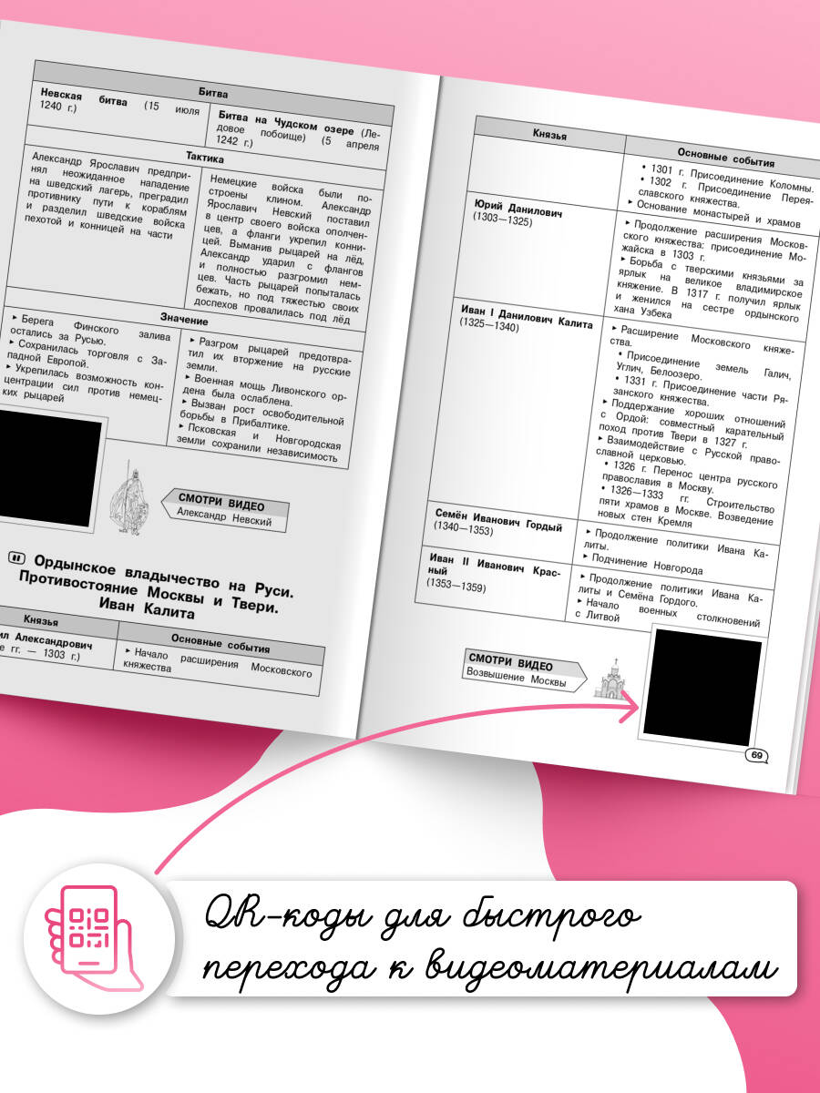 Хочешь подготовиться к экзаменам, но глаза разбегаются от большого объёма информации в учебниках? Решение этой проблемы буквально в одном QR-коде от тебя: просто наводи, сканируй и смотри короткие видеоуроки, в которых преподаватели наглядно объясняют сложные темы! Ёмкая теория в таблицах в комплекте с обучающими анимационными видео поможет выучить предмет, не прибегая к помощи репетиторов. В книге ты найдёшь: • структурированную теорию по всему школьному курсу истории; • практические задания с ответами и пояснениями; • QR-коды для быстрого перехода к видеоматериалам. В пособии развёрнутый поясняющий материал по темам, особо актуальным для сдачи экзаменов, ОГЭ и ЕГЭ 2026, представлен в формате коротких видеороликов. Такой справочник для учеников 5, 6, 7, 8, 9, 10, 11 классов сделает процесс обучения живым и запоминающимся! Попробуй новый подход к обучению: смотри и учись в любое время и в любом месте! Также книга будет полезна для занятий родителей с детьми.| Издательство | ООО "Издательство "Эксмо" |
