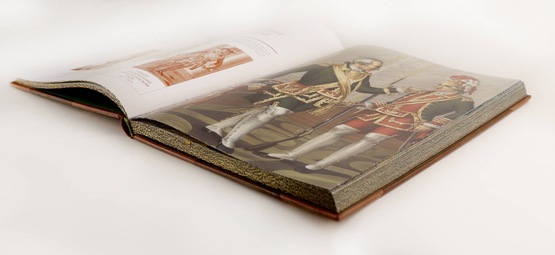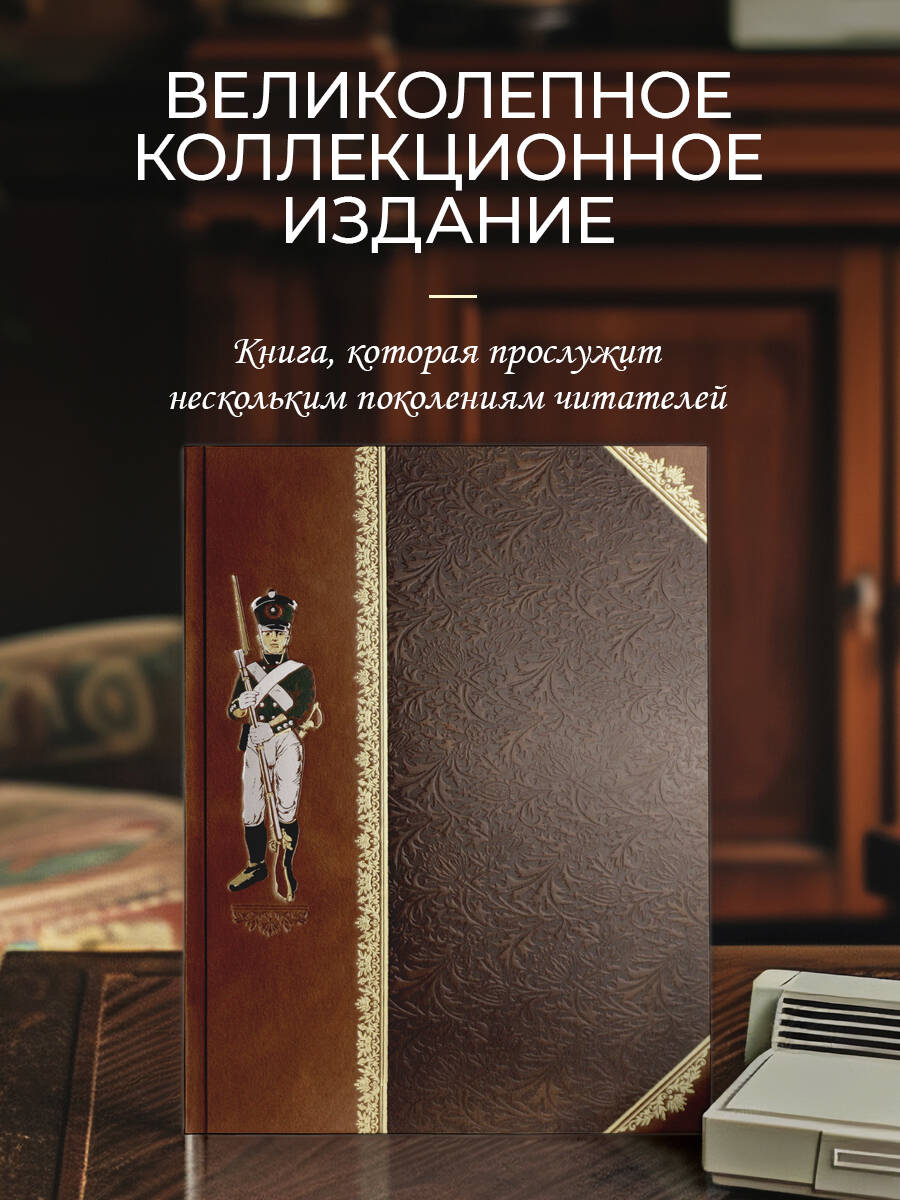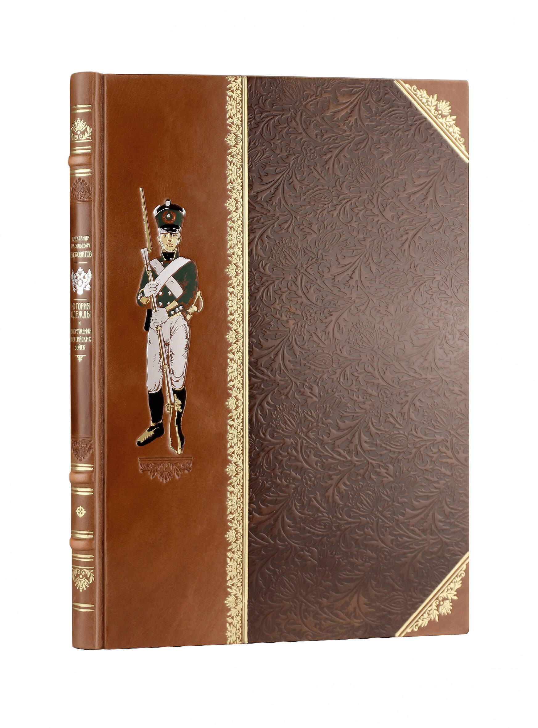 История одежды и вооружения российских войск. Книга большого формата с цветными иллюстрациями и в коллекционном кожаном переплете ручной работы изящным тиснением