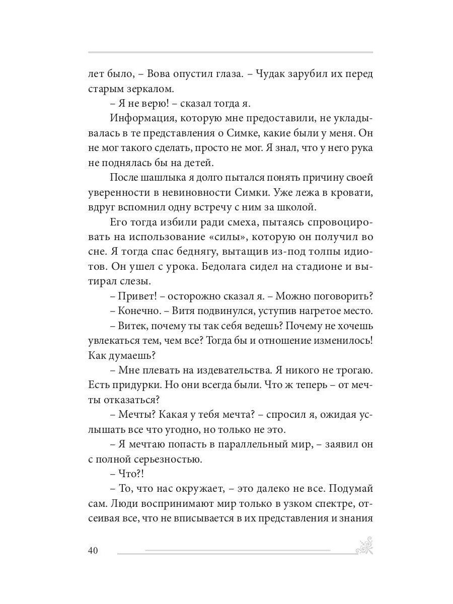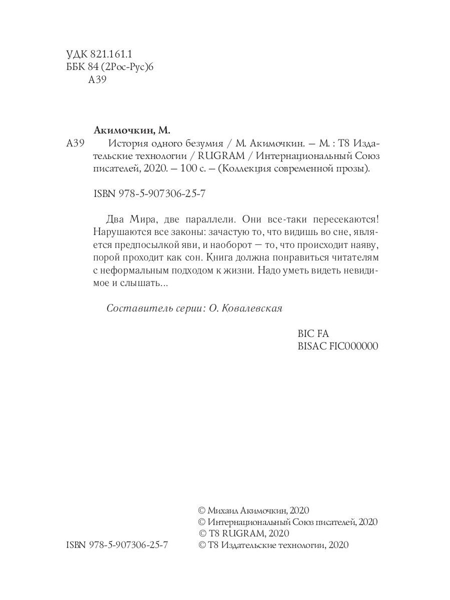 Два Мира, две параллели. Они все-таки пересекаются! Нарушаются все законы: зачастую то, что видишь во сне, является предпосылкой яви, и наоборот - то, что происходит наяву, порой проходит как сон. Книга должна понравиться читателям с неформальным подходом к жизни. Надо уметь видеть невидимое и слышать...| Издательство | Т8 RUGRAM |