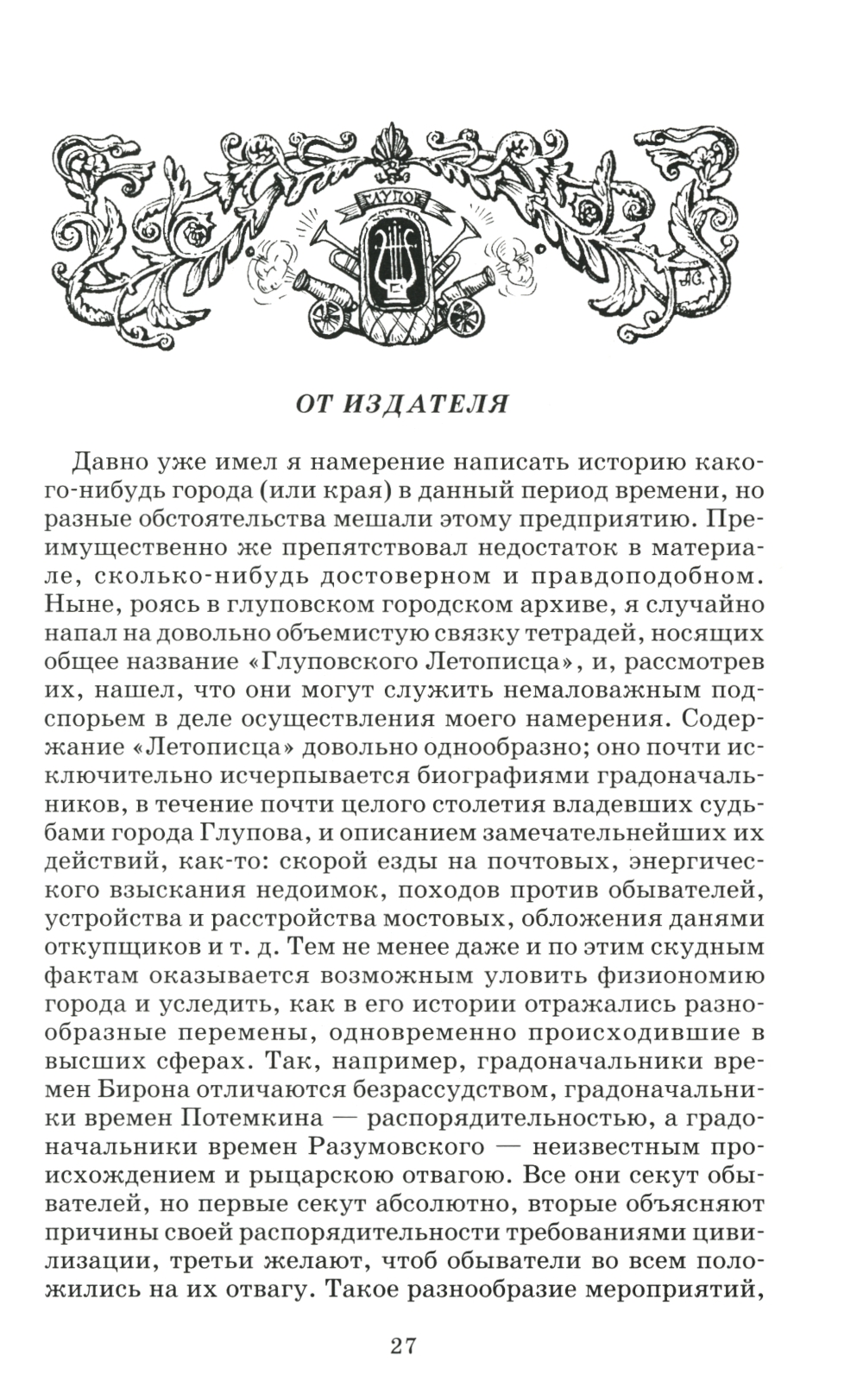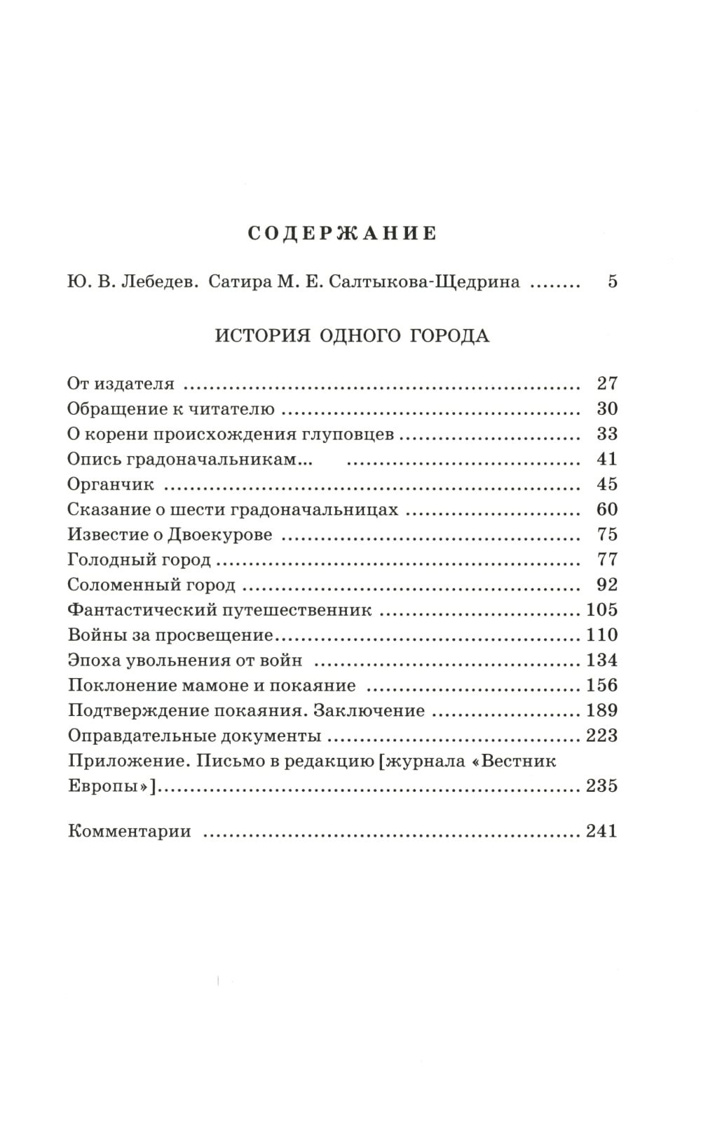 В книгу вошла «История одного города» - шедевр реалистической сатиры великого русского писателя-демократа. Для старшего школьного возраста.| Издательство | Детская литература |