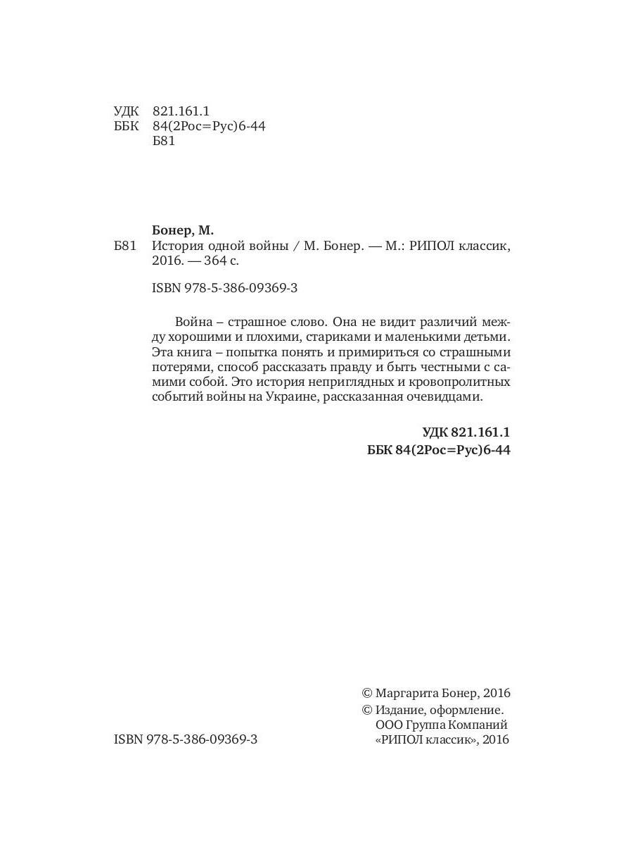 Война - страшное слово. Она не видит различий между хорошими и плохими, стариками и маленькими детьми. Эта книга - попытка понять и примириться со страшными потерями, способ рассказать правду и быть честными с самими собой. Это история неприглядных и кровопролитных событий войны на Украине, рассказанная очевидцами.| Издательство | Рипол Классик |