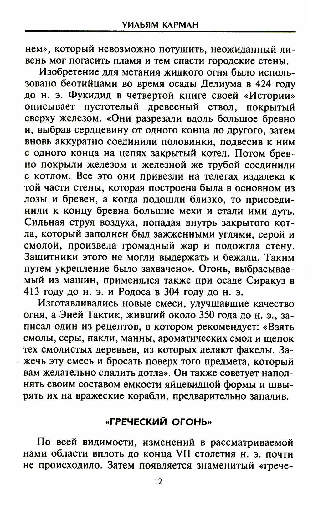 Книга Уильяма Кармана - уникальное справочное исследование по истории огнестрельного оружия. Автор рассказывает о строении и модификации пушек, мушкетов, винтовок, карабинов, пистолей, мин, гранат и ракет и дает подробный обзор развития огнестрельного оружия, охватывая период от древних ассирийцев и греков до начала XX века.