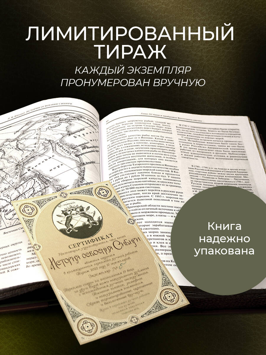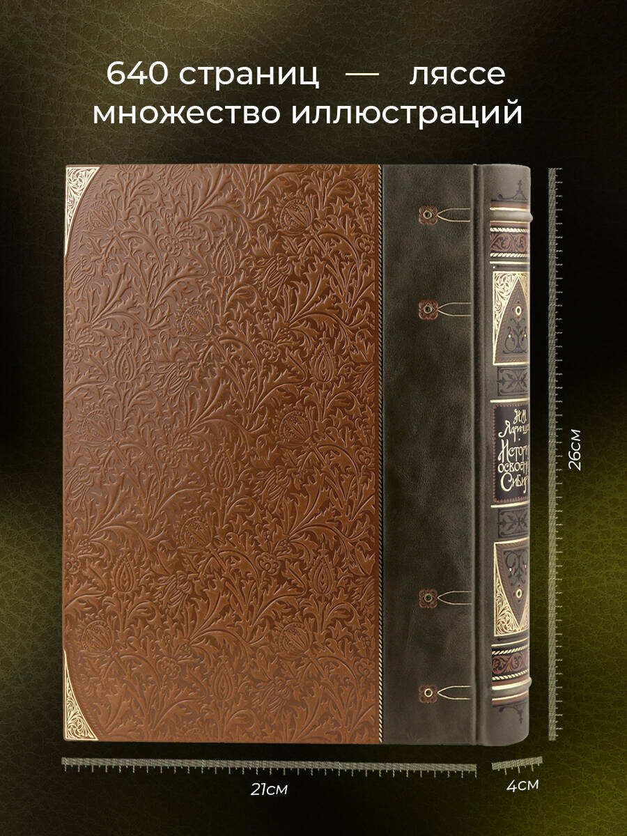 Аннотация: История освоения Сибири. Иллюстрированное издание в коллекционном инкрустированном переплете ручной работы с четырьмя видами тиснения и украшенным обрезом