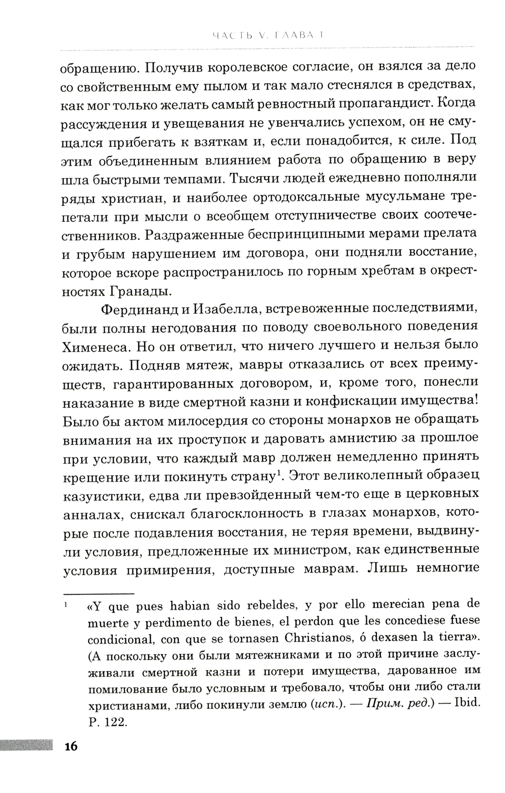 В пятой книге «Истории правления Филиппа II» описывается война с морисками с 1566 по 1571 год, а также война с турками с 1570 по 1574 год. Успехи христианской коалиции в войне против Оттоманской империи, победа в битве при Лепанто нанесли сильный удар по могуществу турок и оказали влияние на всю дальнейшую историю Европы, как, впрочем, и России. В незаконченной шестой книге автор касается внутренних дел Испании при Филиппе, его отношений с видными представителями кастильской знати, кортесами и духовенством, а также тридцатилетнего строительства Эскориала как одного из важнейших архитектурных проектов XVI века. Для широкого круга читателей.| Издательство | Принципиум |