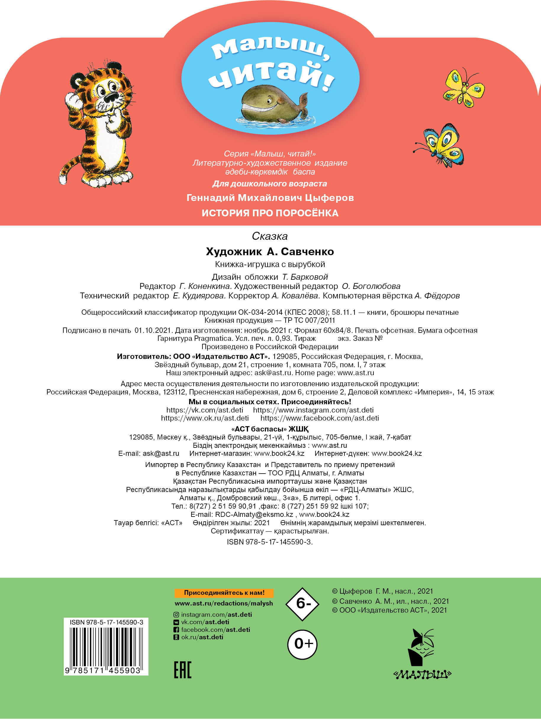 Маленького поросёночка все обижали, он так расстроился, что решил ото всех уйти. Куда его завело это путешествие, вы узнаете из нашей книжки с великолепными иллюстрациями А. Савченко.| Издательство | ИЗДАТЕЛЬСТВО "АСТ" |