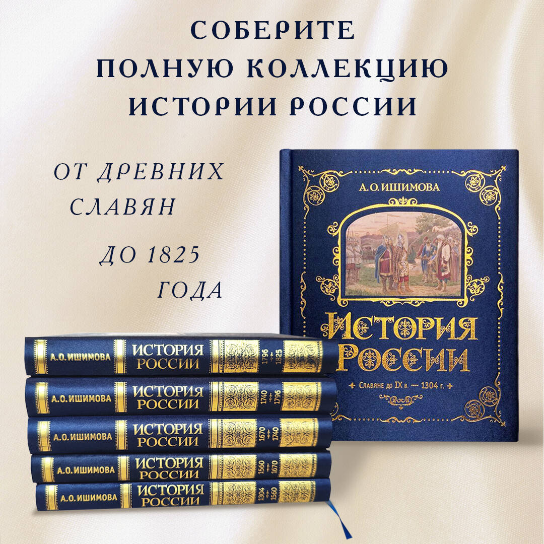 РОСКОШНОЕ ПОДАРОЧНОЕ ИЗДАНИЕ В ШЕСТИ ТОМАХ ЗНАМЕНИТОГО ТРУДА АЛЕКСАНДРЫ ОСИПОВНЫ ИШИМОВОЙ! Издание в твёрдом переплёте с шёлковым покрытием и золотым тиснением. Золотой обрез. Шёлковая лента-ляссе. Плотная бумага, чёткий, удобный для чтения шрифт. В оформлении книги использованы старинные гравюры, приводятся генеалогические древа русских княжеских родов и царствующих фамилий. «Вот как надобно писать!» - это восторженное восклицание А. С. Пушкина стало одним из первых отзывов на книгу Александры Осиповны Ишимовой «История России в рассказах для детей». Масштабный труд первой детской писательницы и переводчицы высоко оценили и критики, и учёные. «"История" г-жи Ишимовой - важное приобретение для русской литературы», «чтение её истории есть истинное наслаждение», «Сочинение госпожи Ишимовой согрето любовью к Отечеству» - вот лишь малая часть откликов на первое издание. Работами писательницы восхищались Н. В. Гоголь, В. Ф. Одоевский, П. А. Вяземский, Ф. М. Достоевский. «История России в рассказах для детей» была удостоена Демидовской премии - высшей российской негосударственной награды за выдающийся вклад в развитие науки (1841) - и только при жизни писательницы выдержала 6 переизданий. Александре Осиповне удалось, казалось бы, невозможное: просто, понятно и интересно рассказать о главных событиях русской истории от древних славян до 1825 года. Лёгкий, образный язык повествования чем-то напоминает стиль русских сказок, который так близок и понятен читателям. Неудивительно, что «История России в рассказах для детей» и в наши дни остаётся одним из самых востребованных изданий. Как бы ни менялись с течением времени взгляды на прошлое, труд А. О. Ишимовой всегда будет ценен тем, что пробуждает в читателях любовь и гордость к своему Отечеству.| Издательство | ООО "Издательство "Эксмо" |