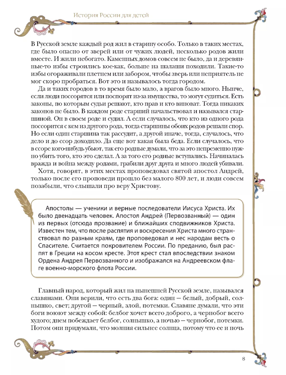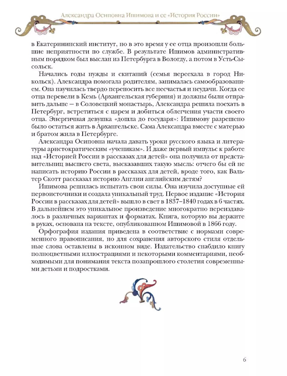 Труд замечательной детской писательницы, историка и педагога А. О. Ишимовой (1805-1881) вот уже второе столетие остается лучшей книгой по русской истории, созданной для детей. Самая лучшая книга по истории России в подаче информации для детей. Написана великолепным литературным языком, интересным и понятным детям. Недаром о творчестве Александры Ишимовой высоко отзывались Пушкин, Гоголь, Белинский и другие корифеи литературы. Однако, самое главное именно в этом нашем издании, это то, что оно иллюстрировано репродукциями известнейших художников России: Васнецова, Сурикова, Рослина, Доу и т.д.| Издательство | Просвещение-Союз |