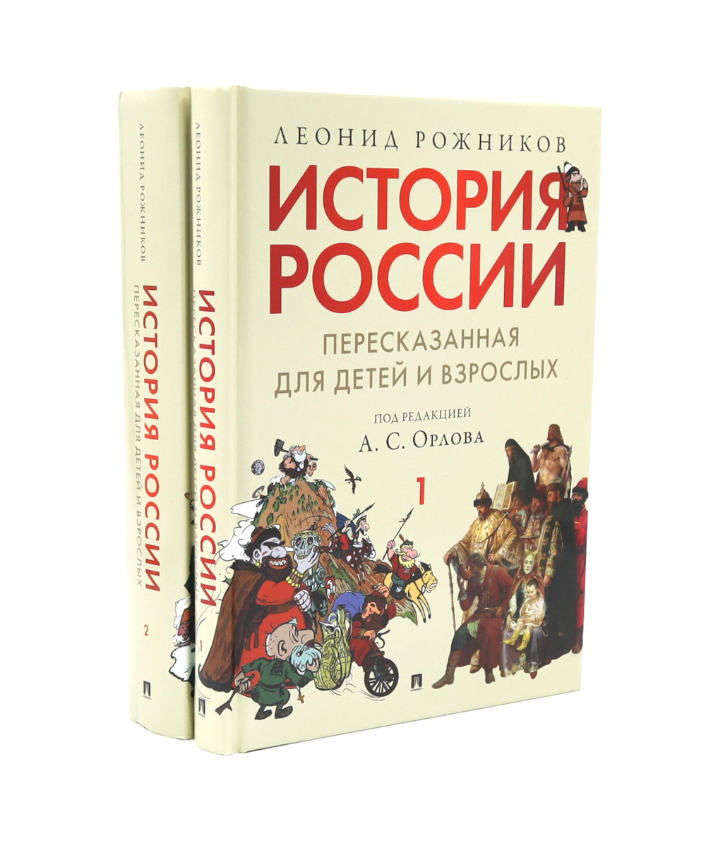 Комплект содержит книги. «История России, пересказ для детей и взрослых. Часть 1» Книга «История России, пересказанная для детей и взрослых.» авторства Рожникова Л.В. и под редакцией Орлова А.С. представляет собой уникальный образовательный проект, который позволяет читателям любого возраста познакомиться с основными событиями и персонажами истории России. Также книга снабжена вопросами и тестами для самопроверки, а также красоными иллюстрациями, помогающими усвоить материал. Простой и понятный язык позволяет понять детям российскую историю, ее трудные события и процессы, полюбить изучение прошлого нашей страны. Книга рекомендуется для чтения всем, кто хочет узнать о самых ярких моментах истории России без перегруза сложных терминов, дат и фактов. Редактором выступил выдающийся педагог, кандидат исторических наук Александр Сергеевич Орлов, который проверил на достоверность все приведенные в книге факты. В первой части книги описываются важнейшие события, происходившие в России от древнейших времен до XVIII века: формирование государства Киевской Руси, переход к московскому централизованному государству, борьба за власть в России в период царствования Рюрика, Романовых и Петра I. Авторы постарались сделать эту информацию доступной и интересной для читателя, поэтому книга написана в форме самобытного пересказа, чтобы оказаться на одной волне с читателем. Задуманная как подражание «Сатирикону», «История России, пересказанная для детей и взрослых» так же последовательно и в пародийном ключе описывает события, происходившие на территории нашей страны, со времен появления здесь мамонтов и первых людей, но, в отличие от знаменитой книги сатириконцев, рассчитана в первую очередь на детей, но фигурирующие в названии история России для детей и взрослых, показывает, что ее можно читать всей семьей. Авторская подача материала и антисерьезный стиль повествования не делают при этом книгу менее познавательной и интересной. Познакомьте своего ребёнка с историей России с этой книгой! «История России, пересказ для детей и взрослых. Часть 2» Больше века прошло с тех пор, как свет увидела «Всеобщая история, обработанная "Сатириконом"» под редакцией А.Т. Аверченко. Авторы-сатириконцы были заранее уверены, что их «Всеобщая история...» не будет «рекомендована Учёным комитетом, состоящ. при М-ве народн, просвещ.», но это не помешало книге стать культовой и выдержать множество изданий. Задуманная как подражание «Сатирикону», «История России, пересказанная для детей и взрослых» так же последовательно и в пародийном ключе описывает события, происходившие на территории нашей страны, со времён появления здесь мамонтов и первых людей, но, в отличие от знаменитой книги сатириконцев, рассчитана в первую очередь на молодого читателя. Авторская подача материала и антисерьёзный стиль повествования не делают при этом книгу менее познавательной и интересной. Отдельного внимания заслуживает великолепный иллюстративный материал, включающий в себя шедевры отечественной исторической живописи и авторские рисунки Марии Филипповой. Во второй части книги рассказывается об истории России с эпохи Петровских преобразований до окончания Крымской Войны. Для широкого круга читателей.| Издательство | Проспект |