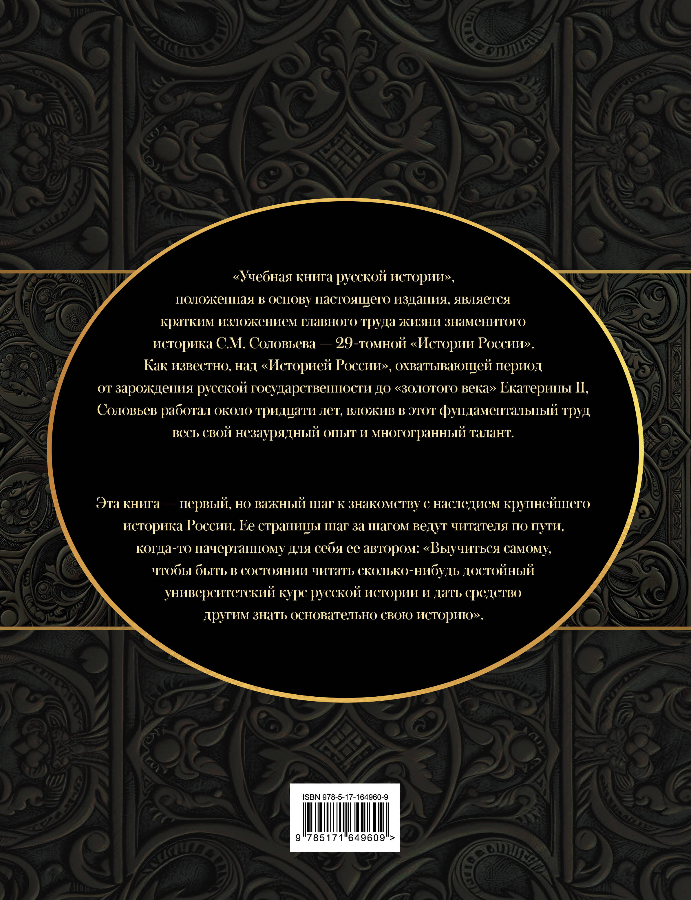 "Учебная книга русской истории", положенная в основу настоящего издания, является кратким изложением главного труда жизни знаменитого историка С.М. Соловьева - 29-томной "Истории России". Как известно, над "Историей России", охватывающей период от зарождения русской государственности до "золотого века" Екатерины II, Соловьев работал около тридцати лет, вложив в этот фундаментальный труд весь свой незаурядный опыт и многогранный талант. Эта книга -- первый, но важный шаг к знакомству с наследием крупнейшего историка России. Ее страницы шаг за шагом ведут читателя по пути, когда-то начертанному для себя ее автором: "Выучиться самому, чтобы быть в состоянии читать сколько-нибудь достойный университетский курс русской истории и дать средство другим знать основательно свою историю". Данное издание богато проиллюстрировано, что дополняет и усиливает впечатление от чтения книги.| Издательство | Издательство "АСТ" |