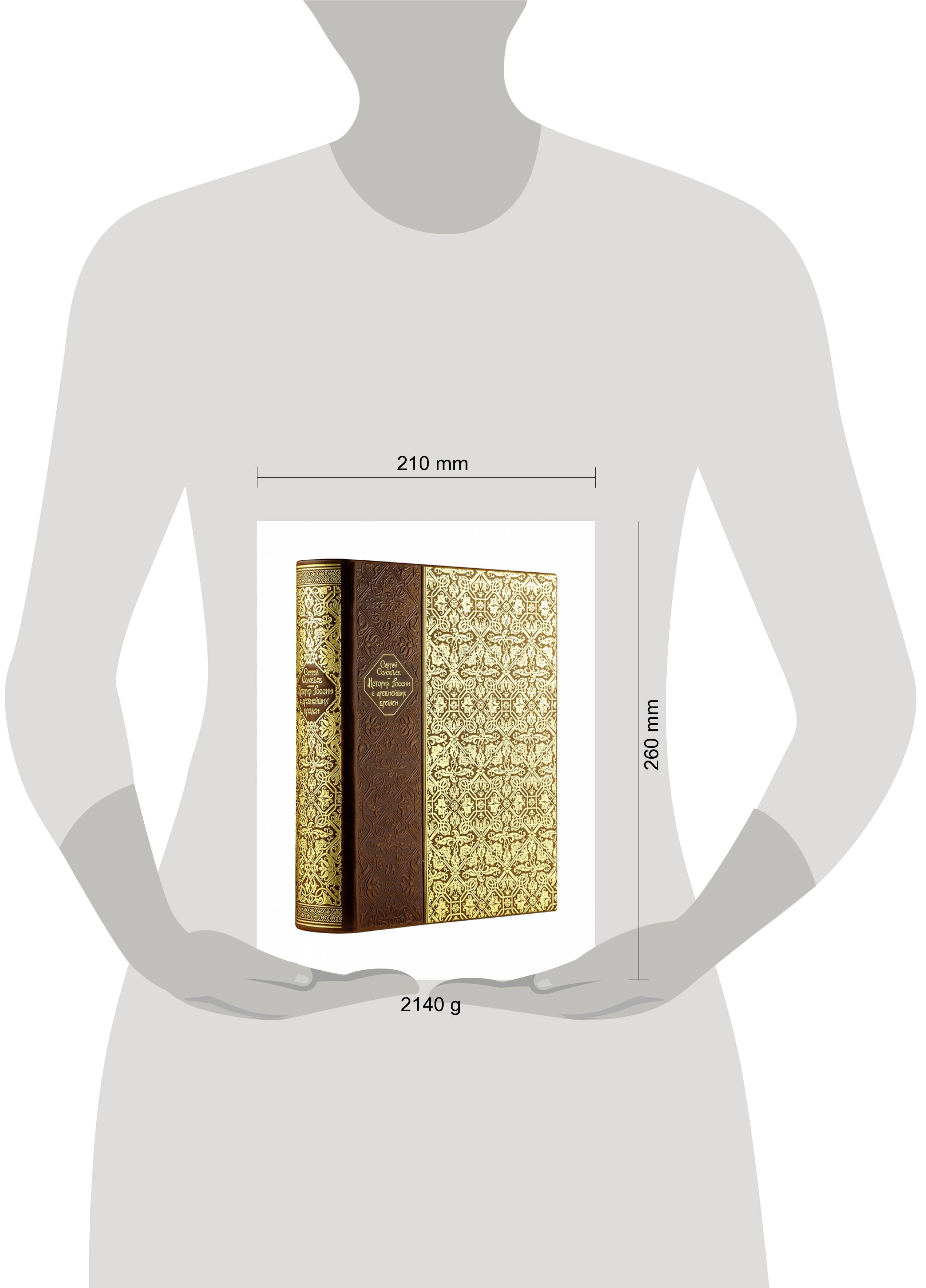 Книга в коллекционном переплете ручной работы, изготовленном в лучших традициях переплетного искусства, отпечатана на белой бумаге с лёгкой текстурой. В тексте - более 120-ти редких фотографий, репродукций и графических изображений. Цветные иллюстрации отпечатаны на специальных листах из высокобелой мелованной бумаги и вшиты в книгу. Переплёт из гладкой переплётной кожи натурального дубления коньячного цвета украшен по авторским рисункам двумя видами тиснения. Тончайшее золотое и рельефное глубокое тиснение великолепно передают орнаменты, воспроизводящие музейные образцы древнерусских тканей. Форзацы из дизайнерской тонированной бумаги идеально подобраны по цвету к переплету. Обрезы окрашены, торшонированы и вызолочены вручную. Капталы и ляссе шёлковые, золотистые. К книге прилагается красочный сертификат, подтверждающий уникальность издания, он вложен в каждый экземпляр и пронумерован вручную.| Издательство | ООО "Издательство "Эксмо" |