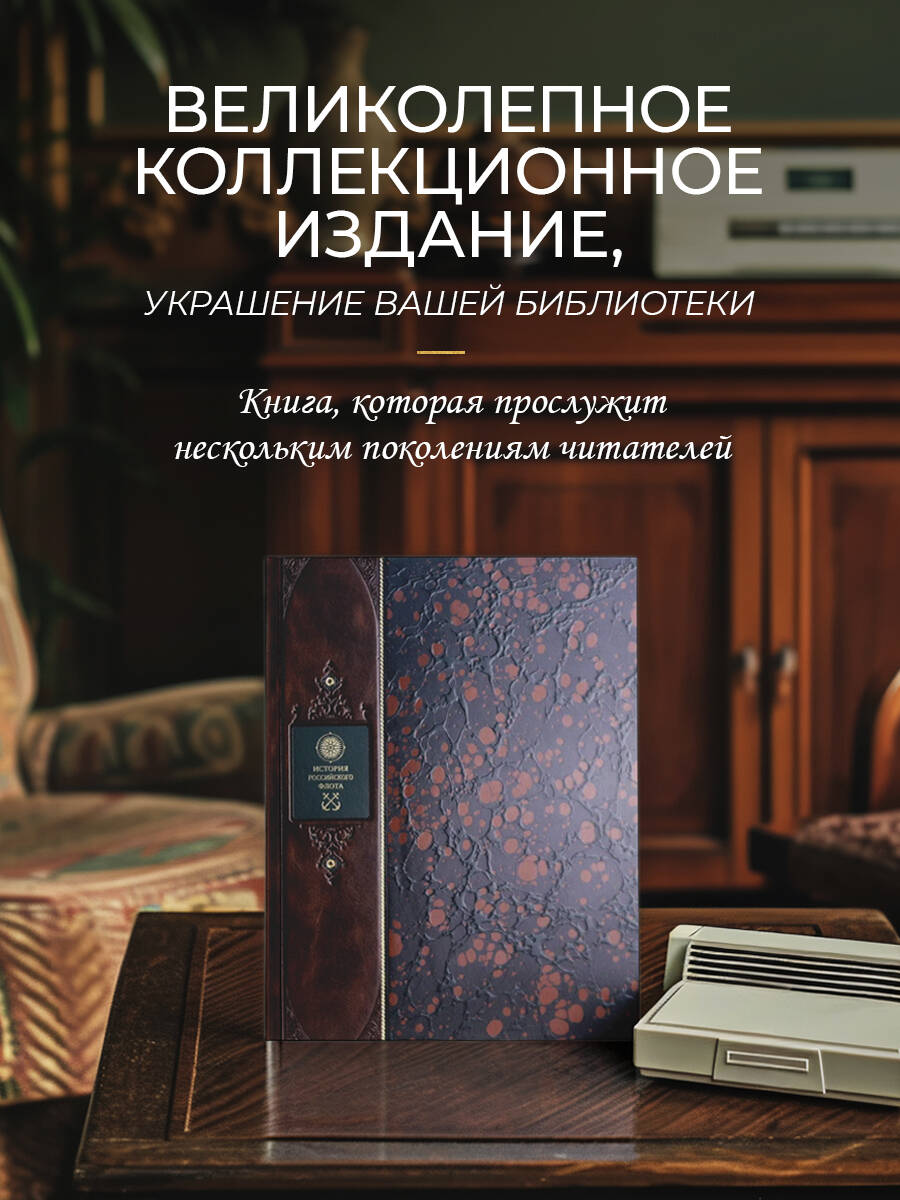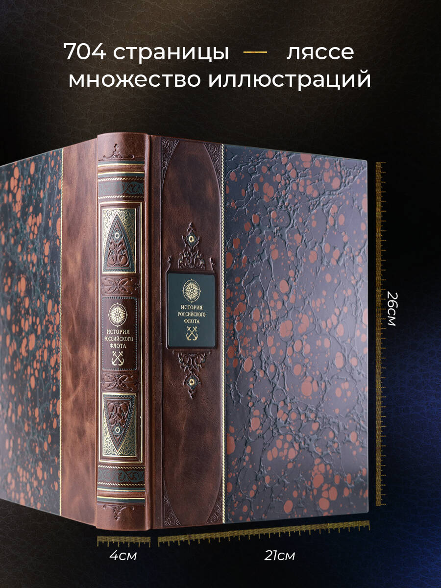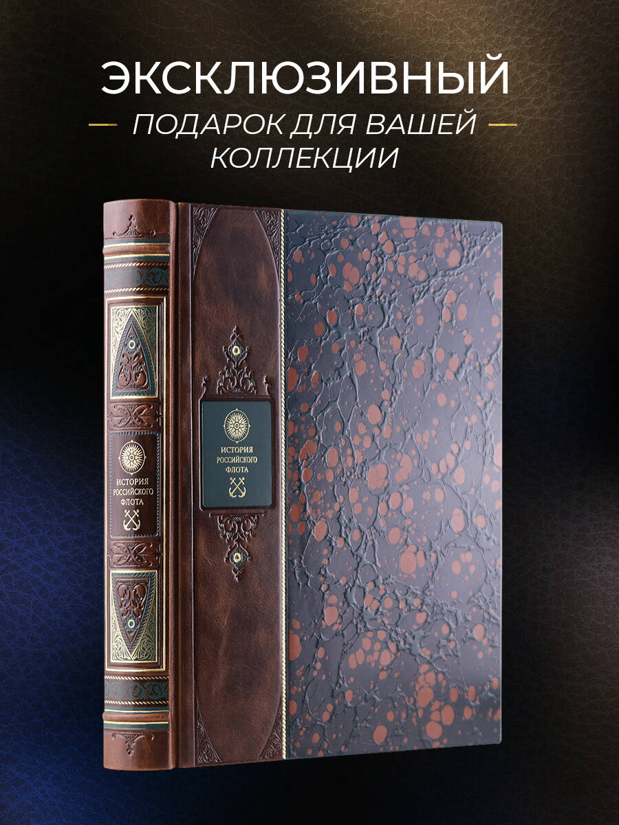Аннотация: История российского флота. Книга в коллекционном кожаном переплете ручной работы с окрашенным и золочёным обрезом и многоцветным тиснением